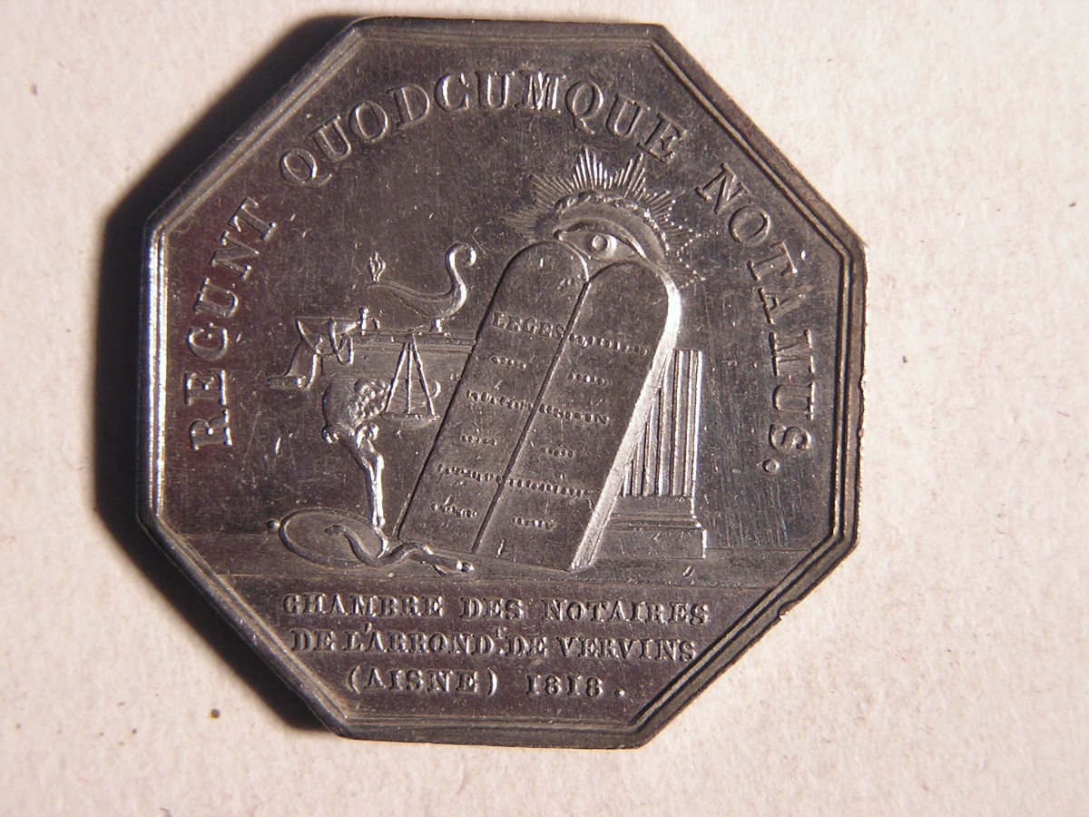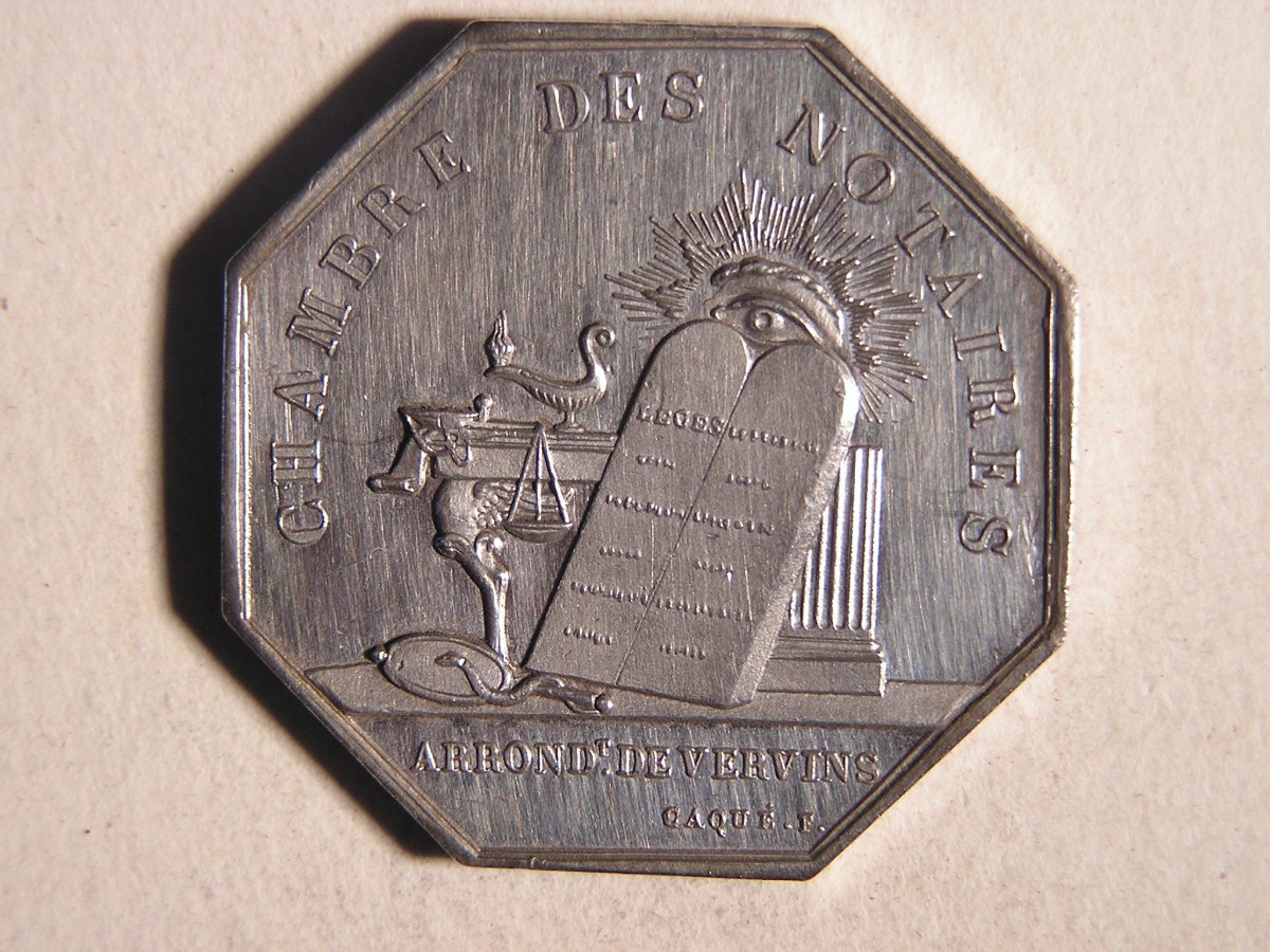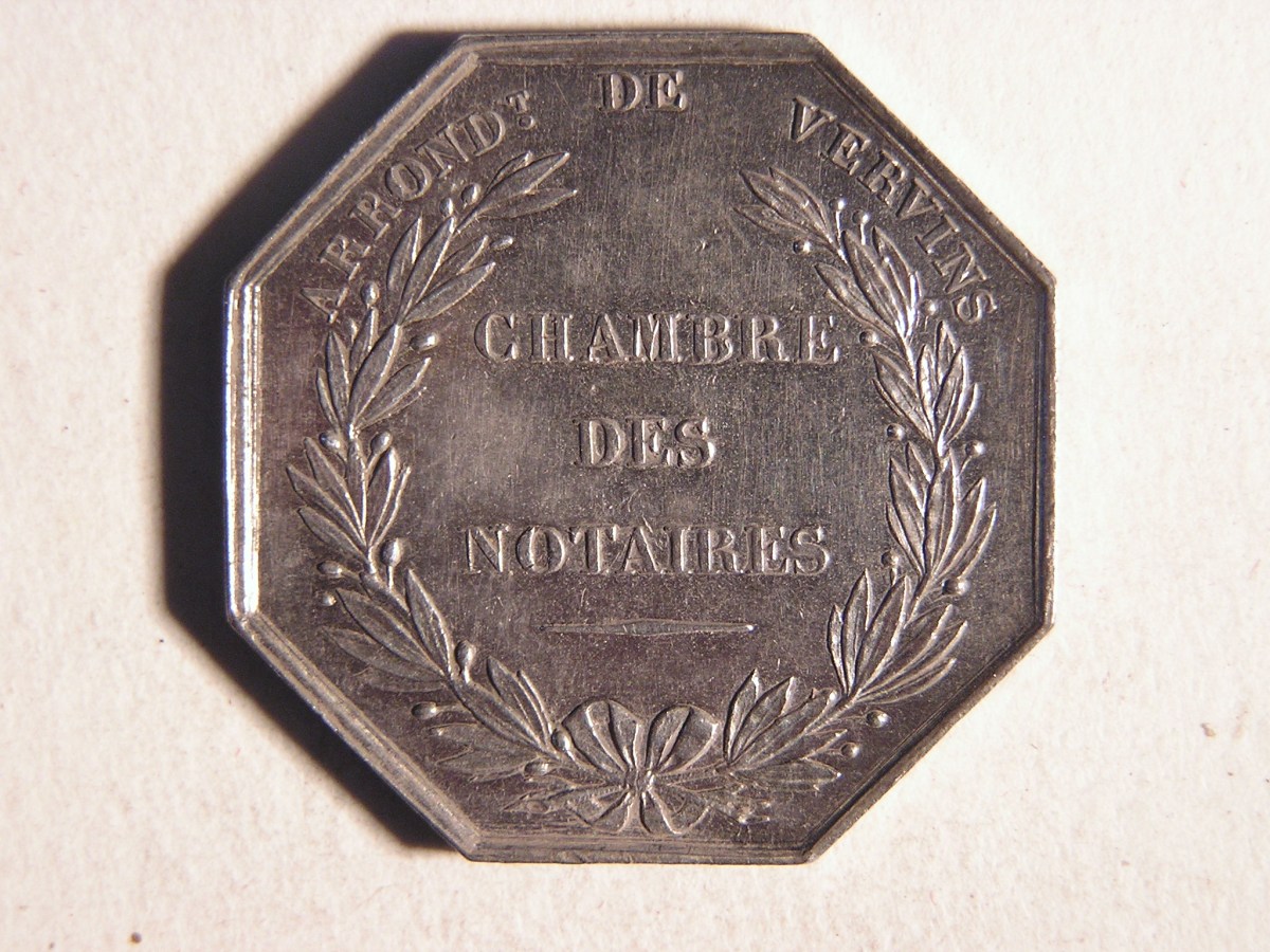 VERVINS. 4 Jetons de notaires en argent, de forme octogonale.