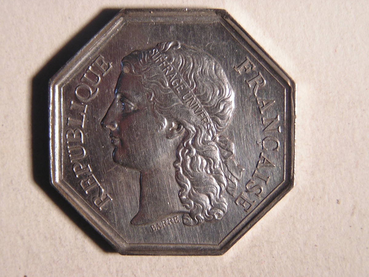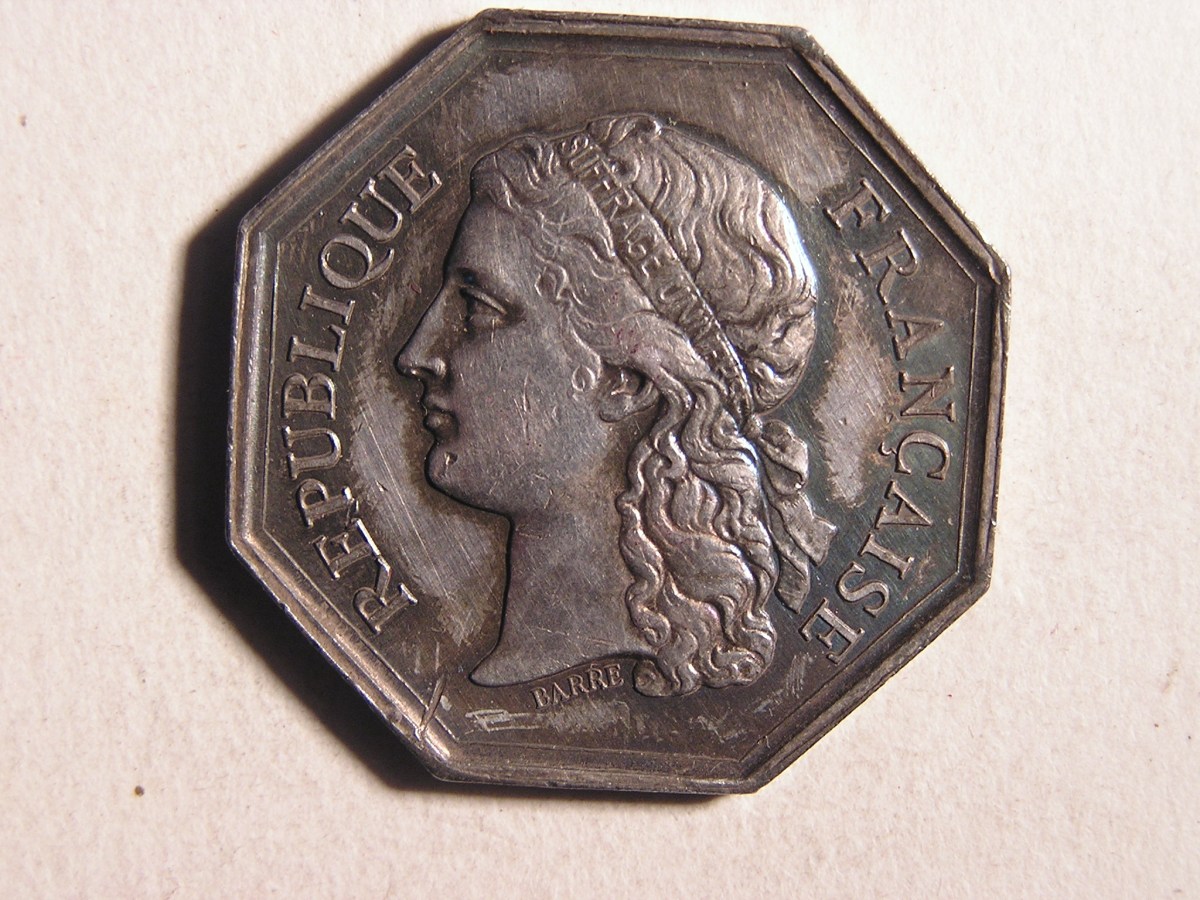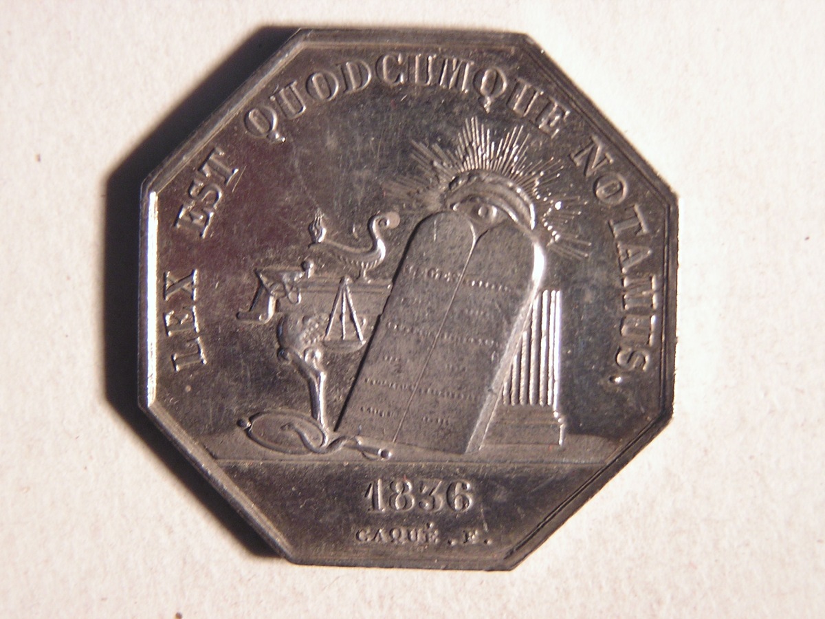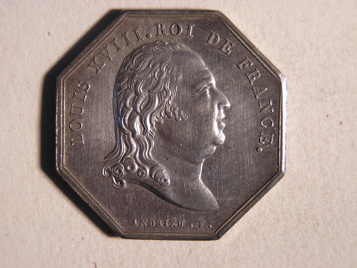 VERVINS. 4 Jetons de notaires en argent, de forme octogonale.