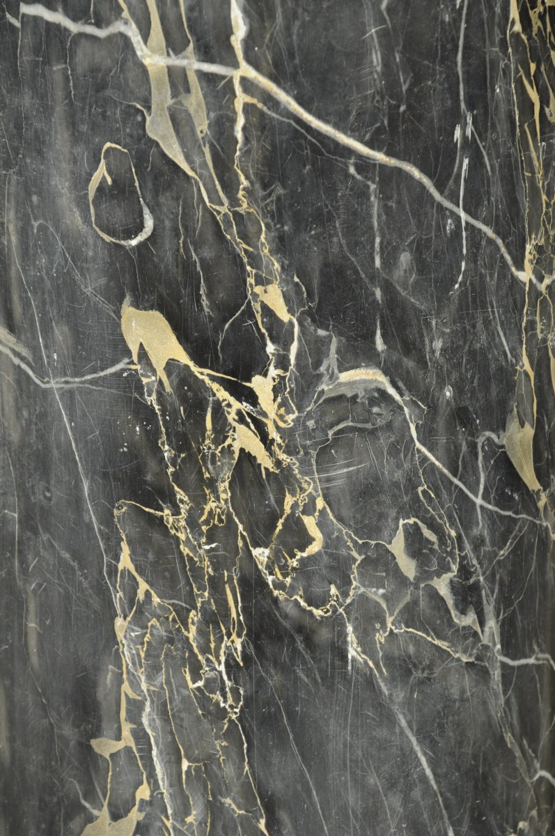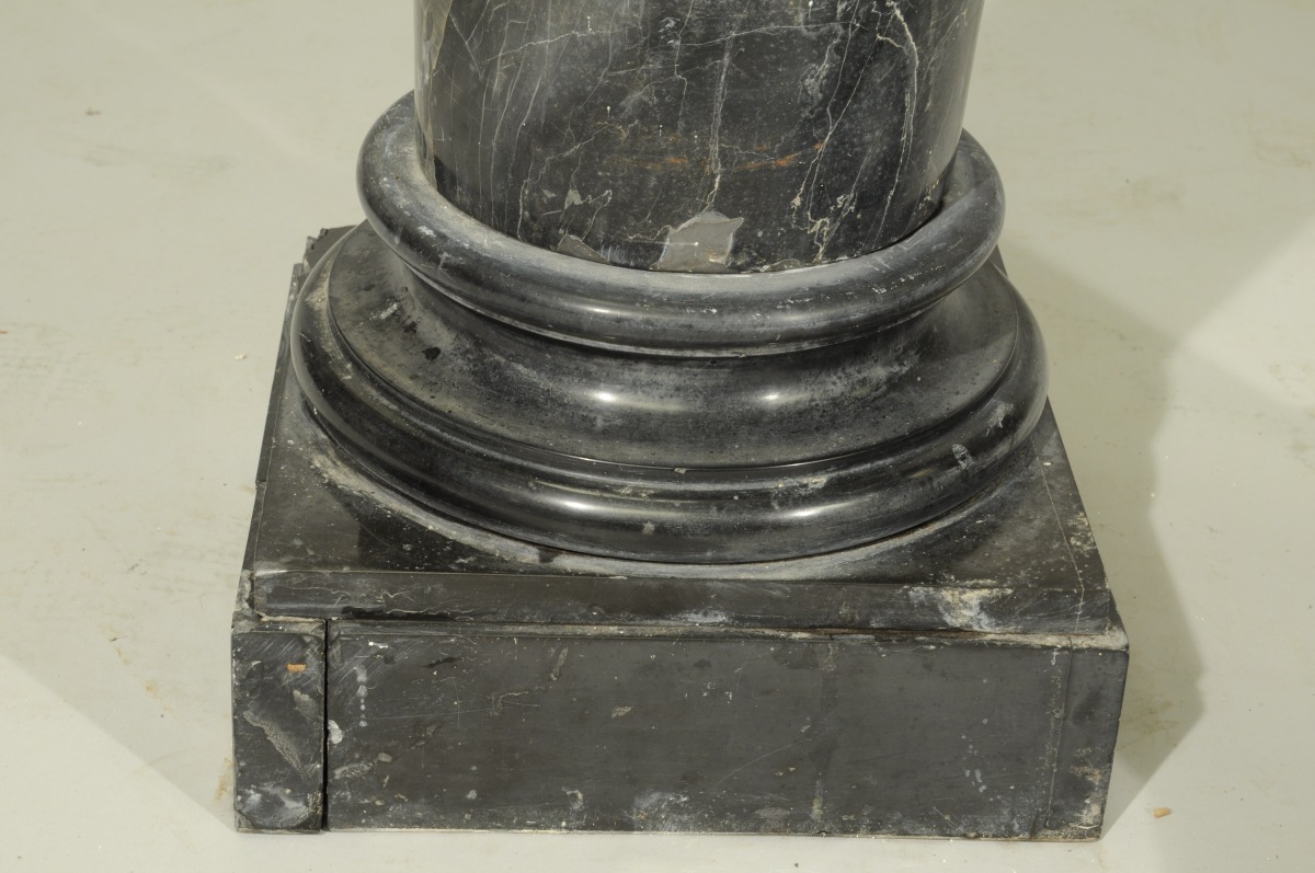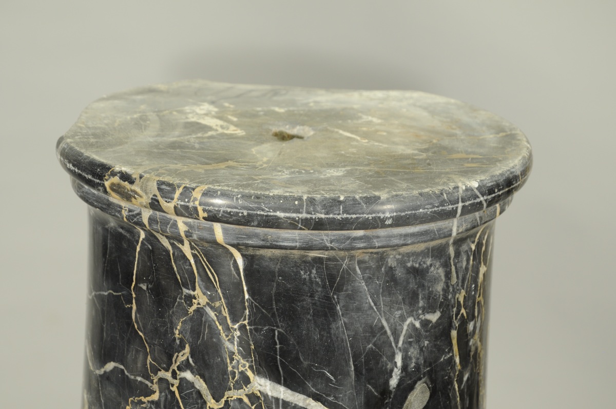 en marbre noir veiné blanc / beige socle à piédouche de forme carrée.