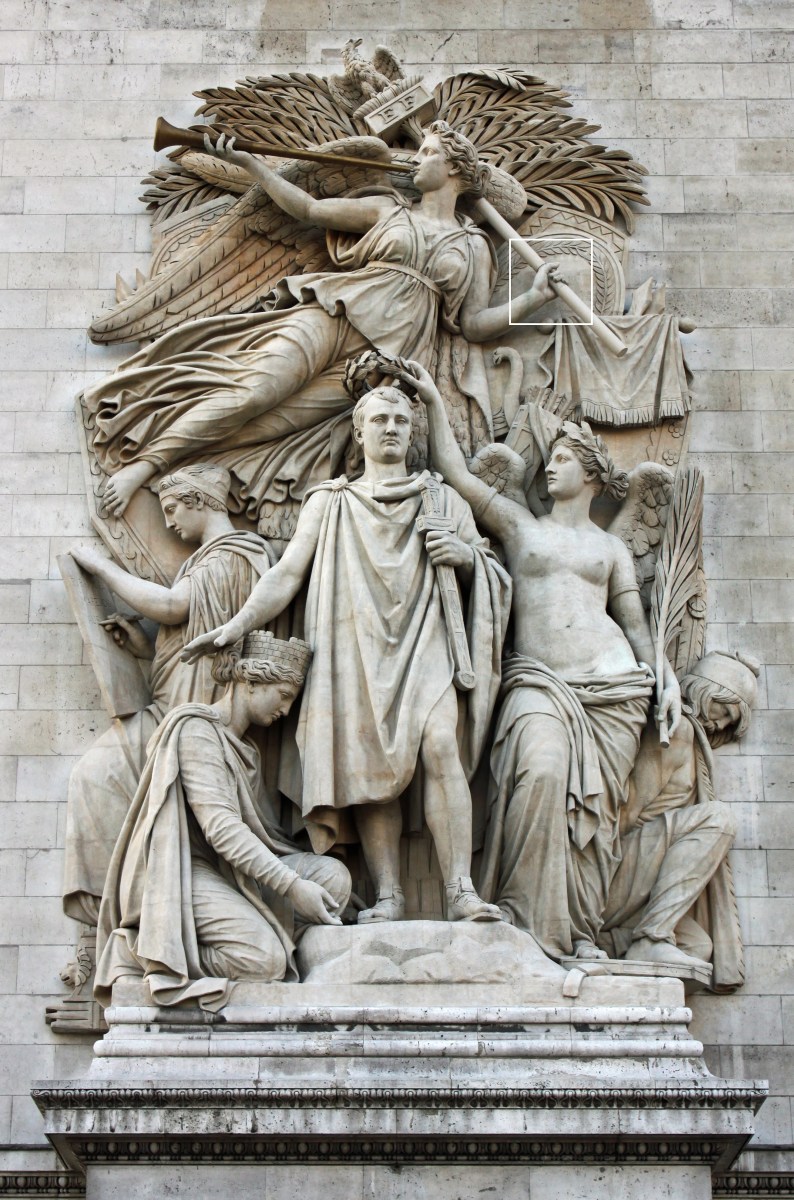 Main de la renommée pour "L'Apothéose de l'Empereur" sur l'Arc de Triomphe de l'Étoile à Paris.