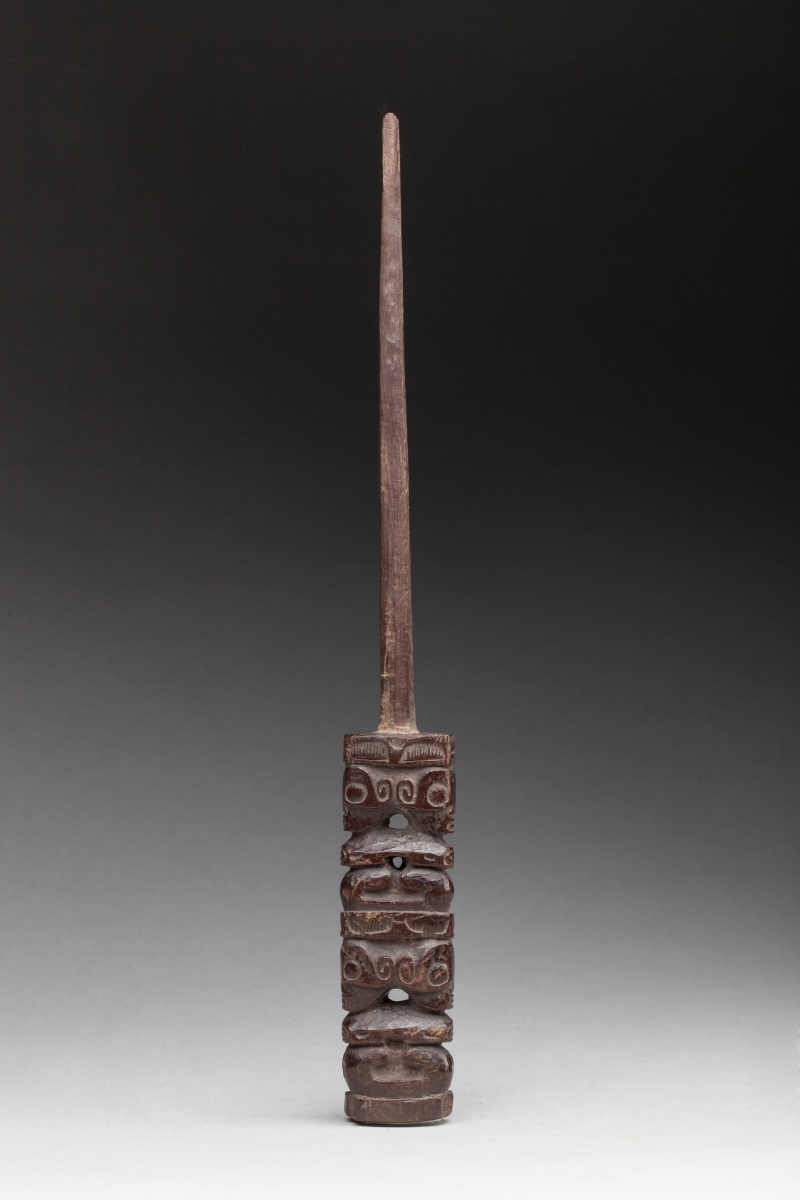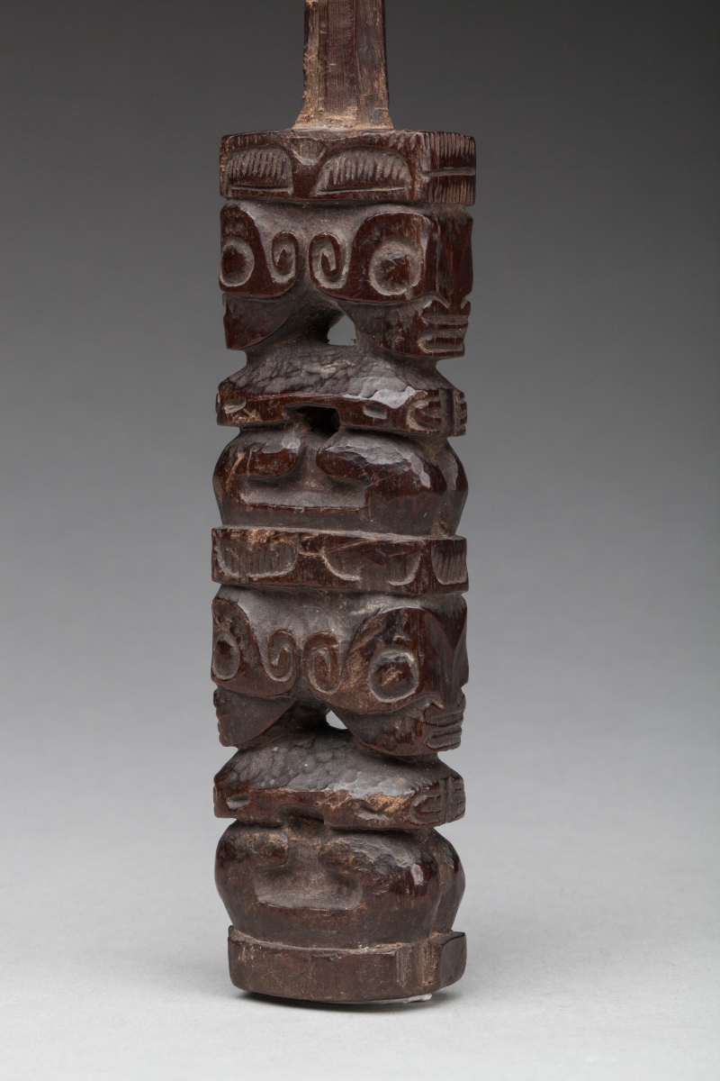 en bois sculpté de 4 "Tiki" dos à dos, représentant un mythe fondateur relatif aux ancêtres. Emblème de rang. Belle patine brune.