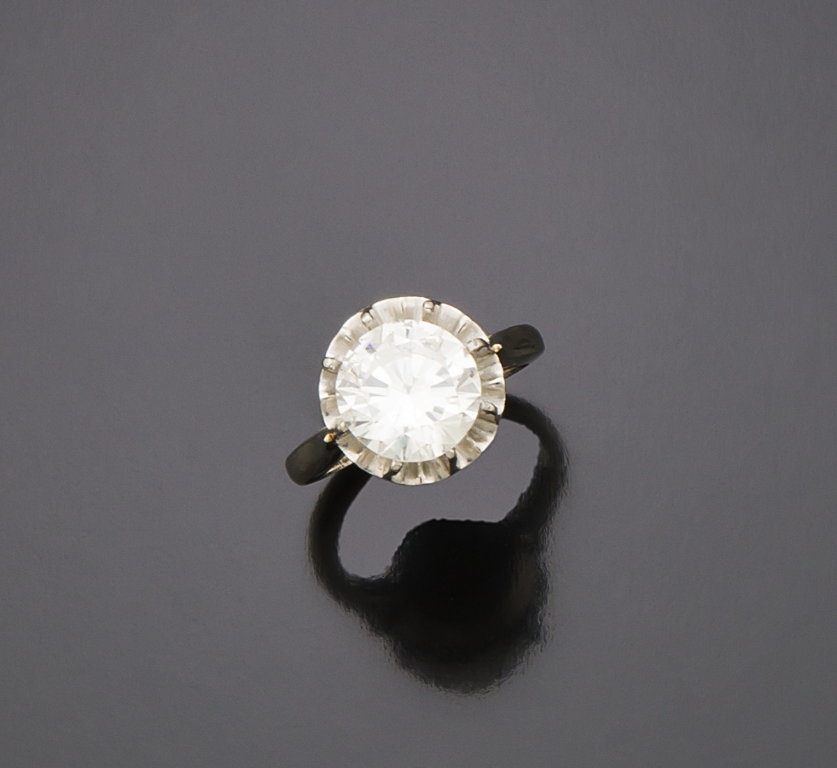 BAGUE en or gris 18K et platine, sertie d'un diamant solitaire de forme ronde et de taille brillant, pesant 3,07 ct.