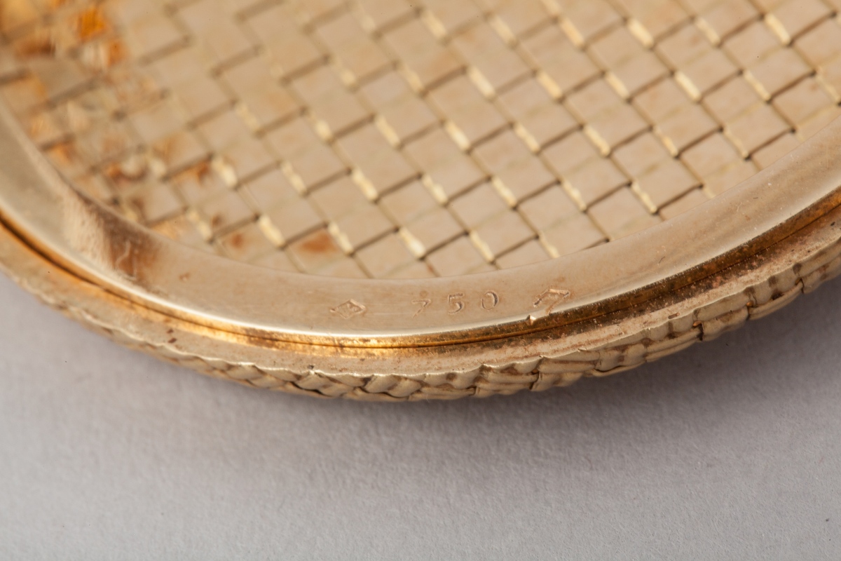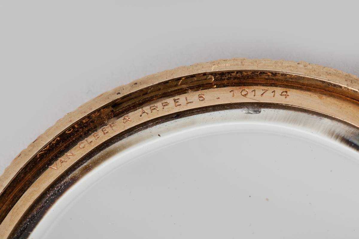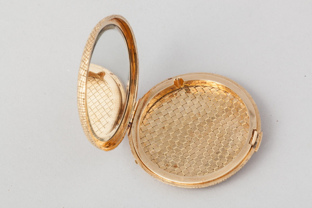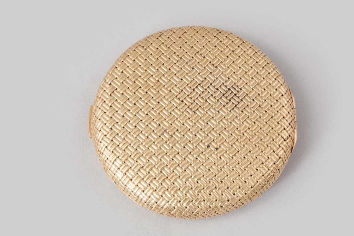 VAN CLEEF AND ARPELS. POUDRIER en or jaune de forme circulaire à motif de vannerie. Signé et numéro 101714.