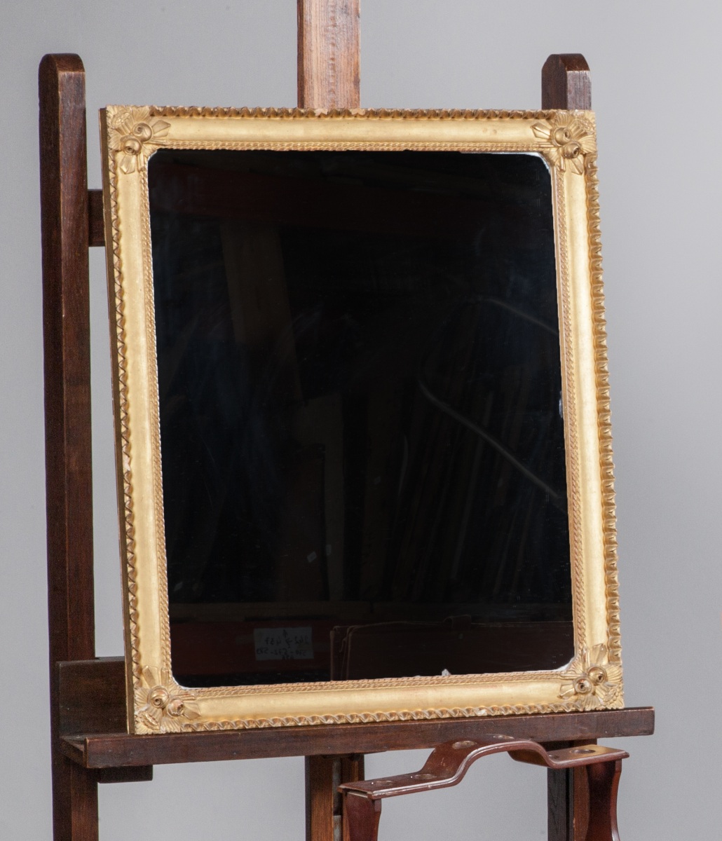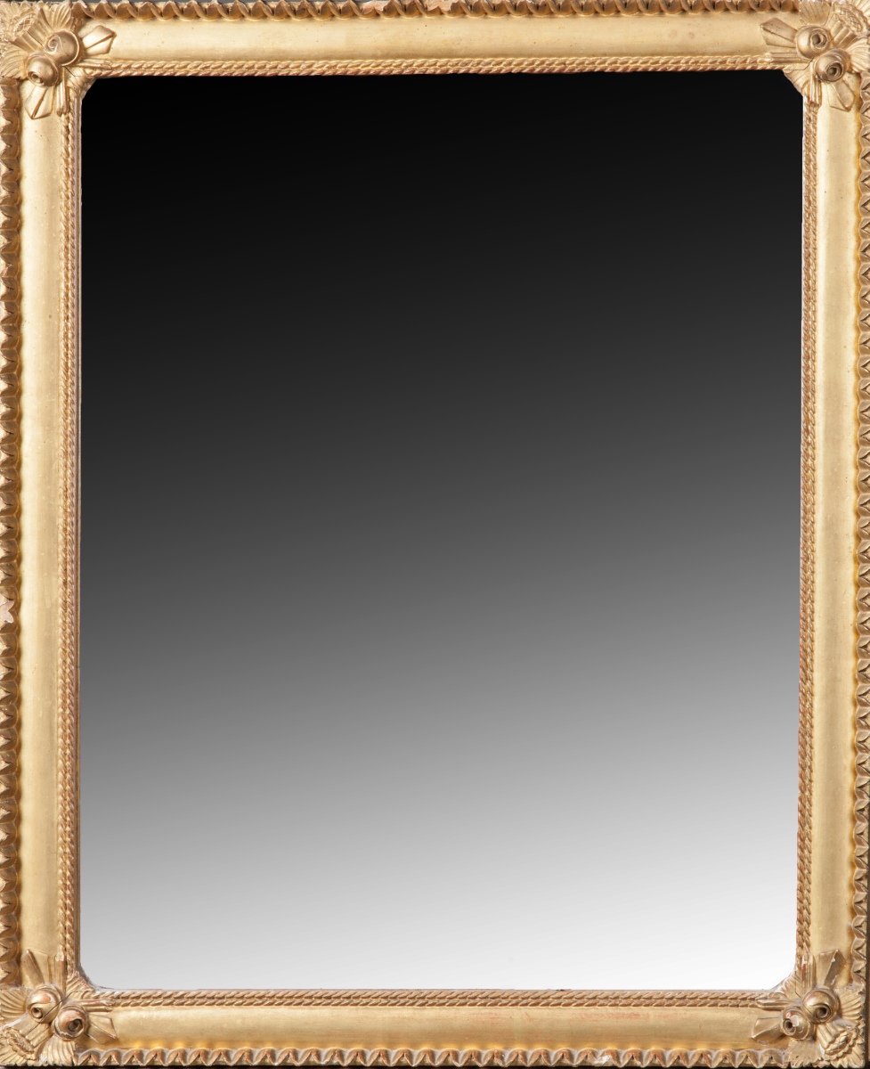 rectangulaire en bois mouluré, sculpté, stuqué et doré à décor de deux cordelettes et d'une frise de lotus, avec deux roses dans chaque angle..