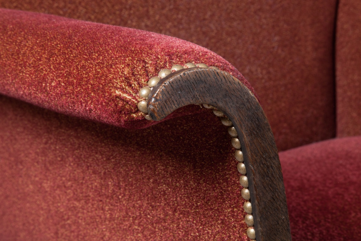 Rateau fait de son hôtel particulier un florilège de ses oeuvres. Meubles et objets peuvent être des variantes de modèles déjà présents chez des clients, ou, le plus souvent, des créations originales. Ces fauteuils en sont l'exemple. Ils réinterprètent la forme curule à l'antique et présentent plusieurs traits propres aux meubles de Rateau dans les années 1930. Il emploi désormais le bois naturel, noirci ou cérusé, la paille collée, les beaux cuirs et le marbre noir. Laboratoire d'idée, ces fauteuils sont déclinés dans une variante, en 1934, pour l'appartement de Monsieur Duplan, avenue Foch à Paris.