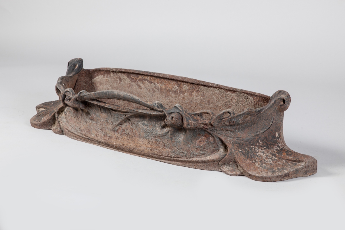 de forme oblongue en fonte de fer à décor ajouré de motifs floraux stylisés.