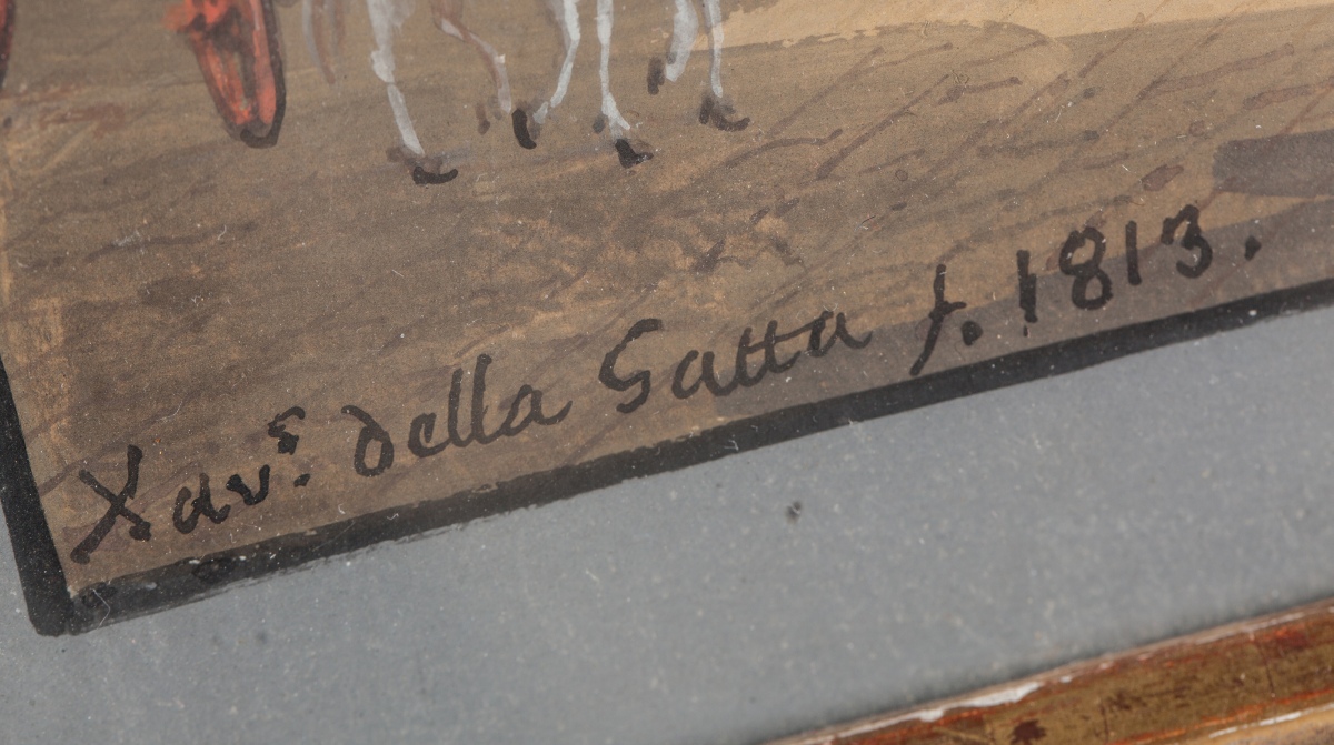 Gouache, légèrement insolée, signée en bas à gauche "Xav. della Gatta" et datée 1813.
