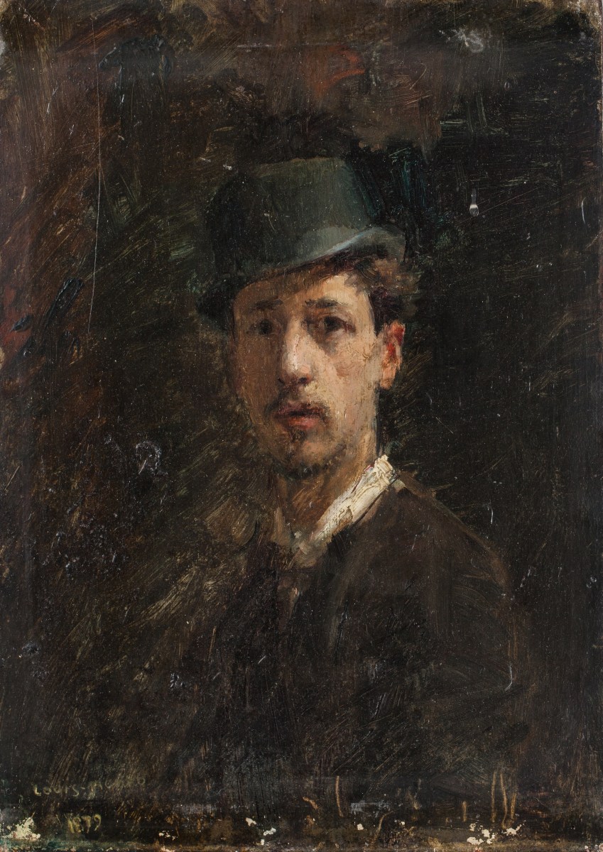 Signée et datée 1879 en bas à gauche, mention manuscrite au verso : mon portrait à 18 ans.