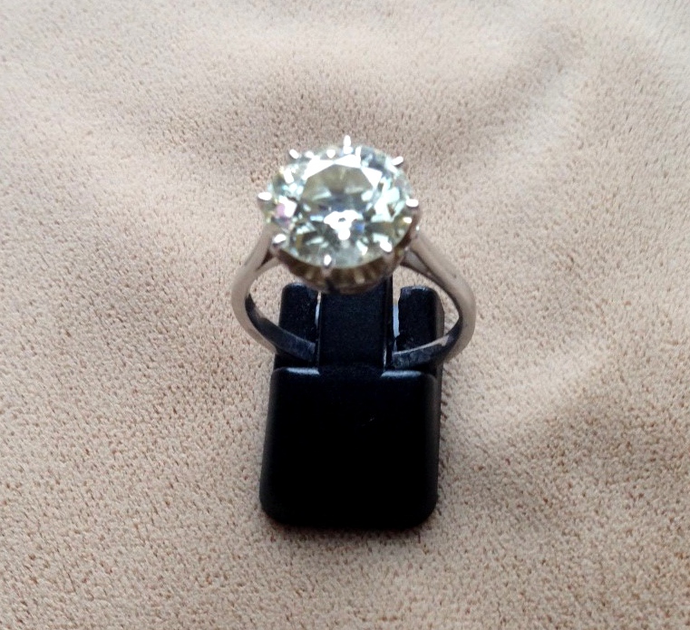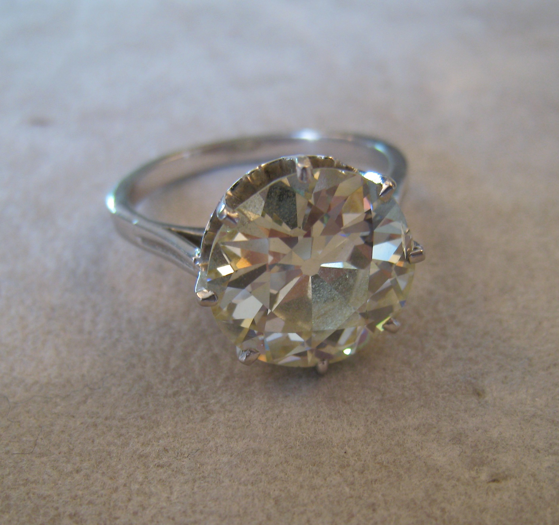 BAGUE sertie d'un diamant solitaire de forme ronde demi-taille pesant environ 4,80 à 5,20 ct. La monture en platine à huit griffes.