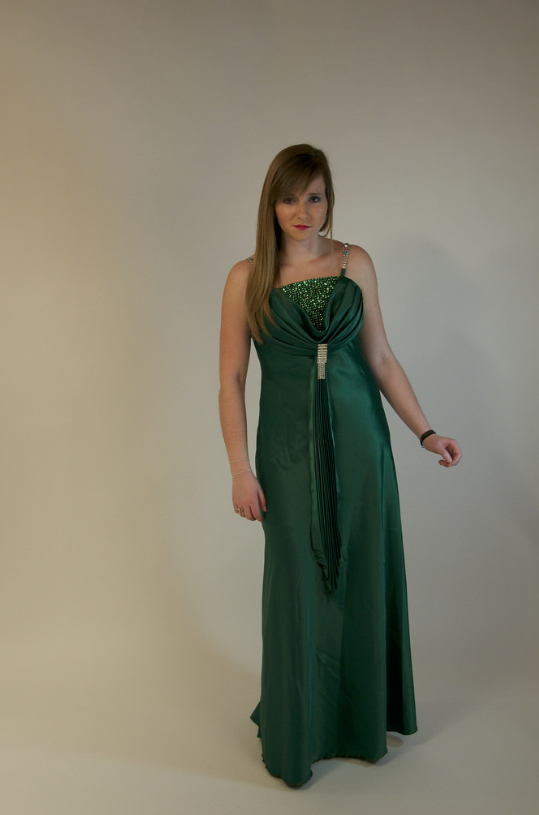 Robe de soirée longue, verte.