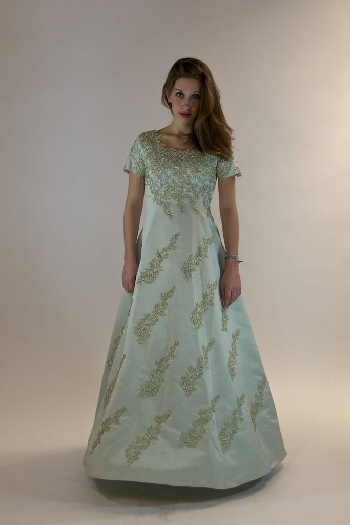 Robe princesse à manches courtes et fleurs en dentelle.
