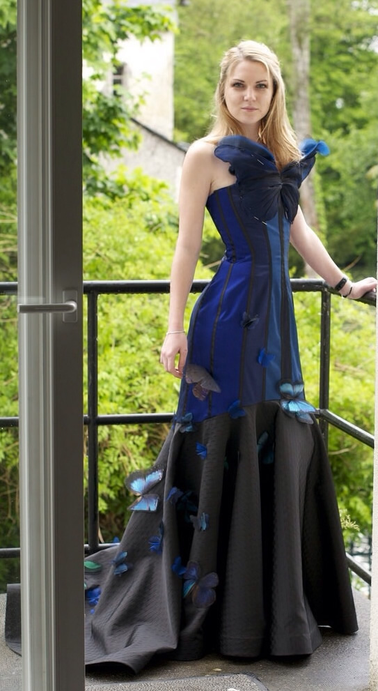 Robe papillons en satin réalisée chez Jean Paul Gauthier, elle a nécéssité 5 semaines de travail. .