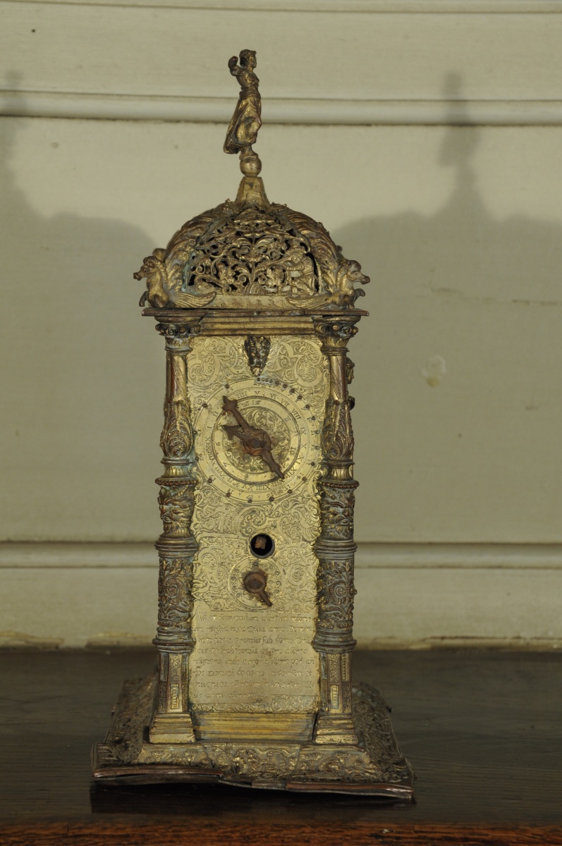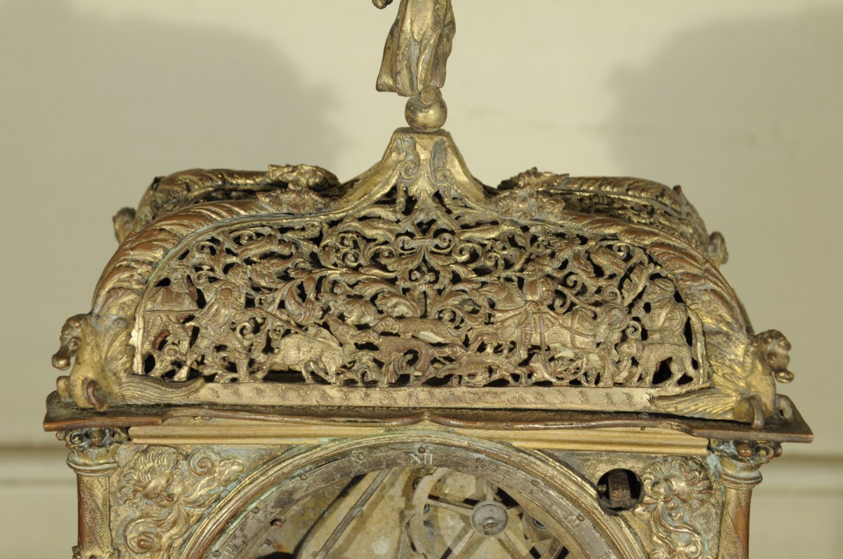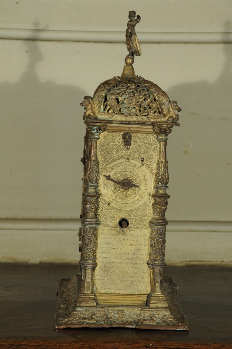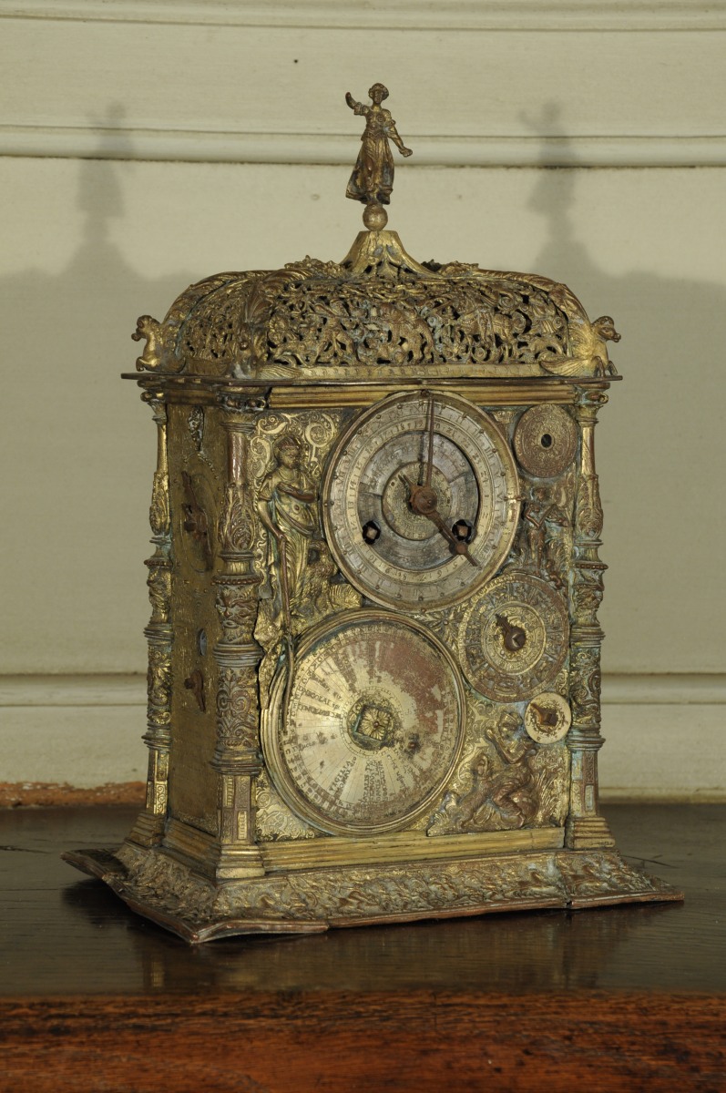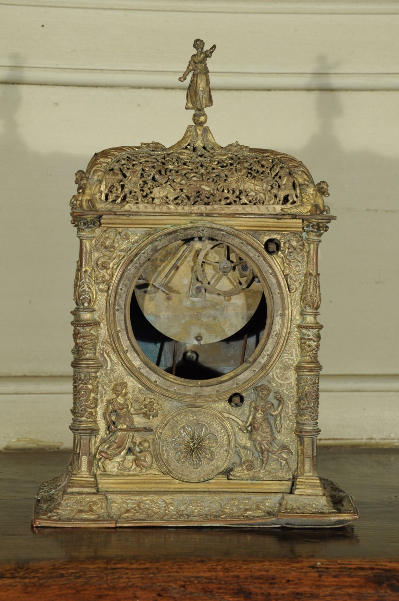 Réplique de l'horloge de table de 1564 par Jeremias METZGER (1527- Augsbourg, 1592) conservée au Kunsthistorisches Museum de Vienne. Une réplique comparable conservée dans la Spencer Collection (Kansas).