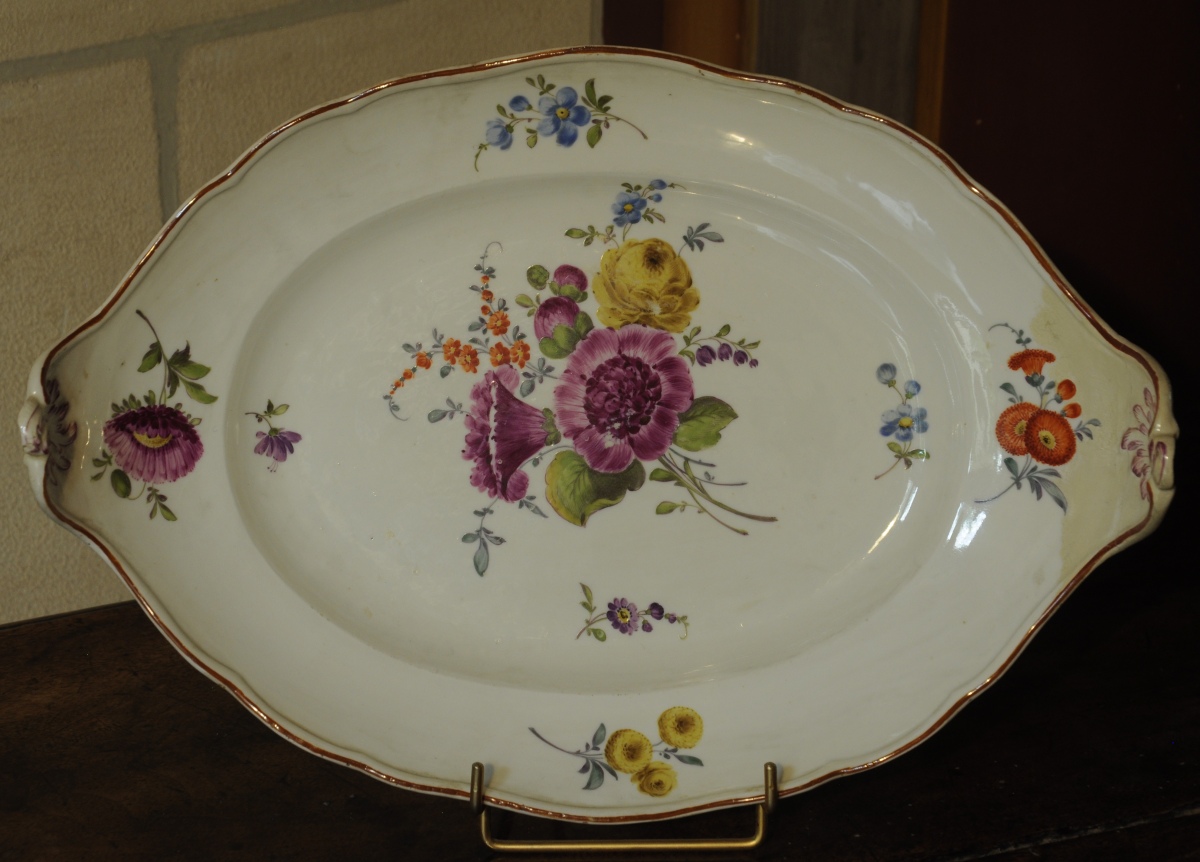 PLAT creux et ovale, à bord chantourné, décor polychrome de fleurs.
