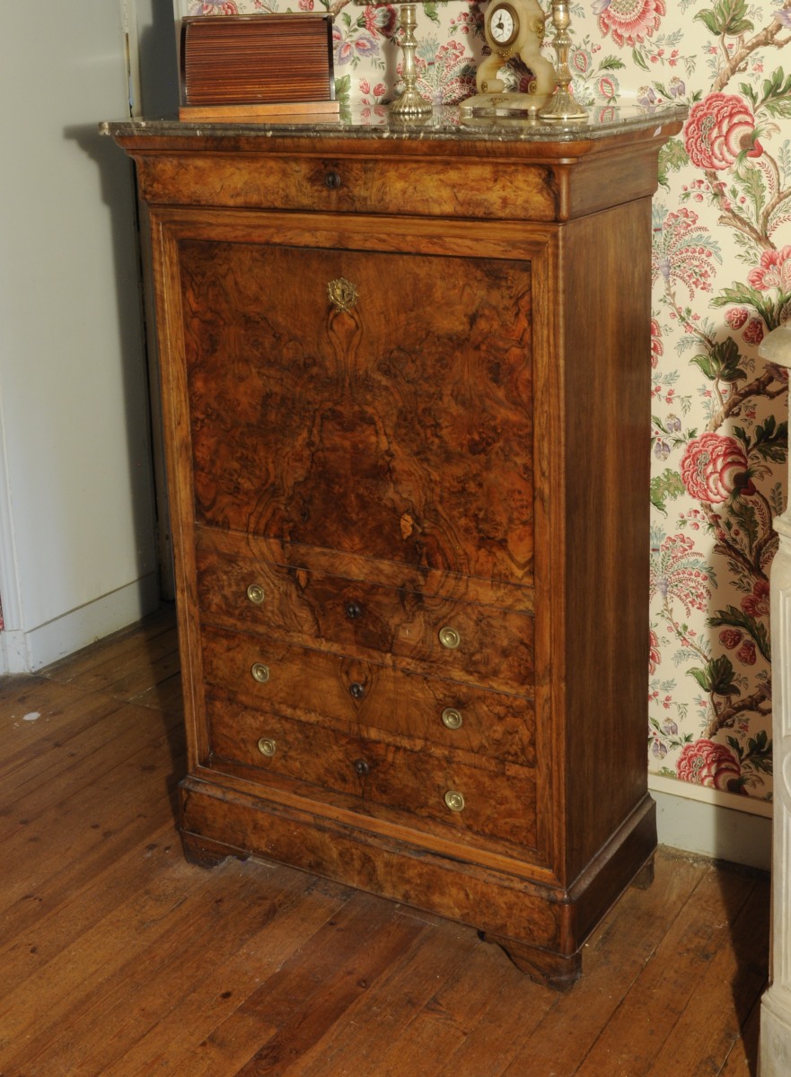 SECRÉTAIRE en ronce de noyer et placage de noyer.