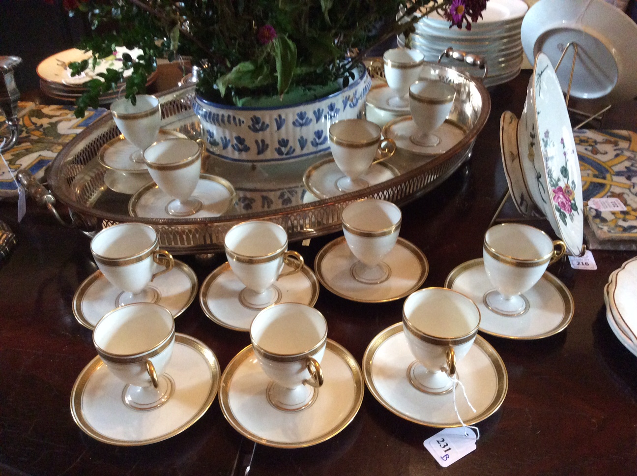 SERVICE À CAFÉ en porcelaine, 12 tasses. Décor de filets or.