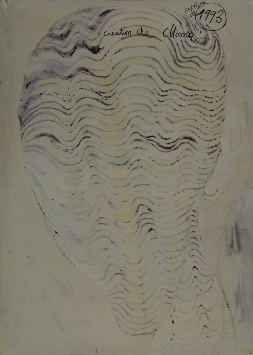 Encrine. Datée 1993 et marquée "création de 1993" et "création de Chomo" au dos.