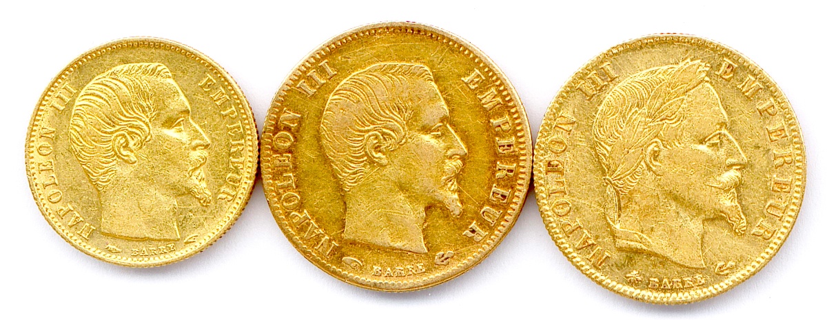 Lot de trois pièces or Napoléon III :