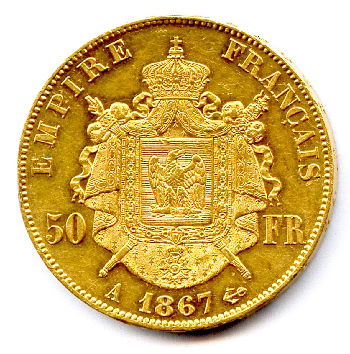 Napoléon III (tête laurée) 50 Francs 1867 Paris. TB.