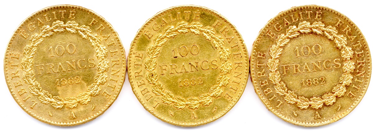 100 Francs or (Dieu protège la France) 1882 Paris. Très beaux.