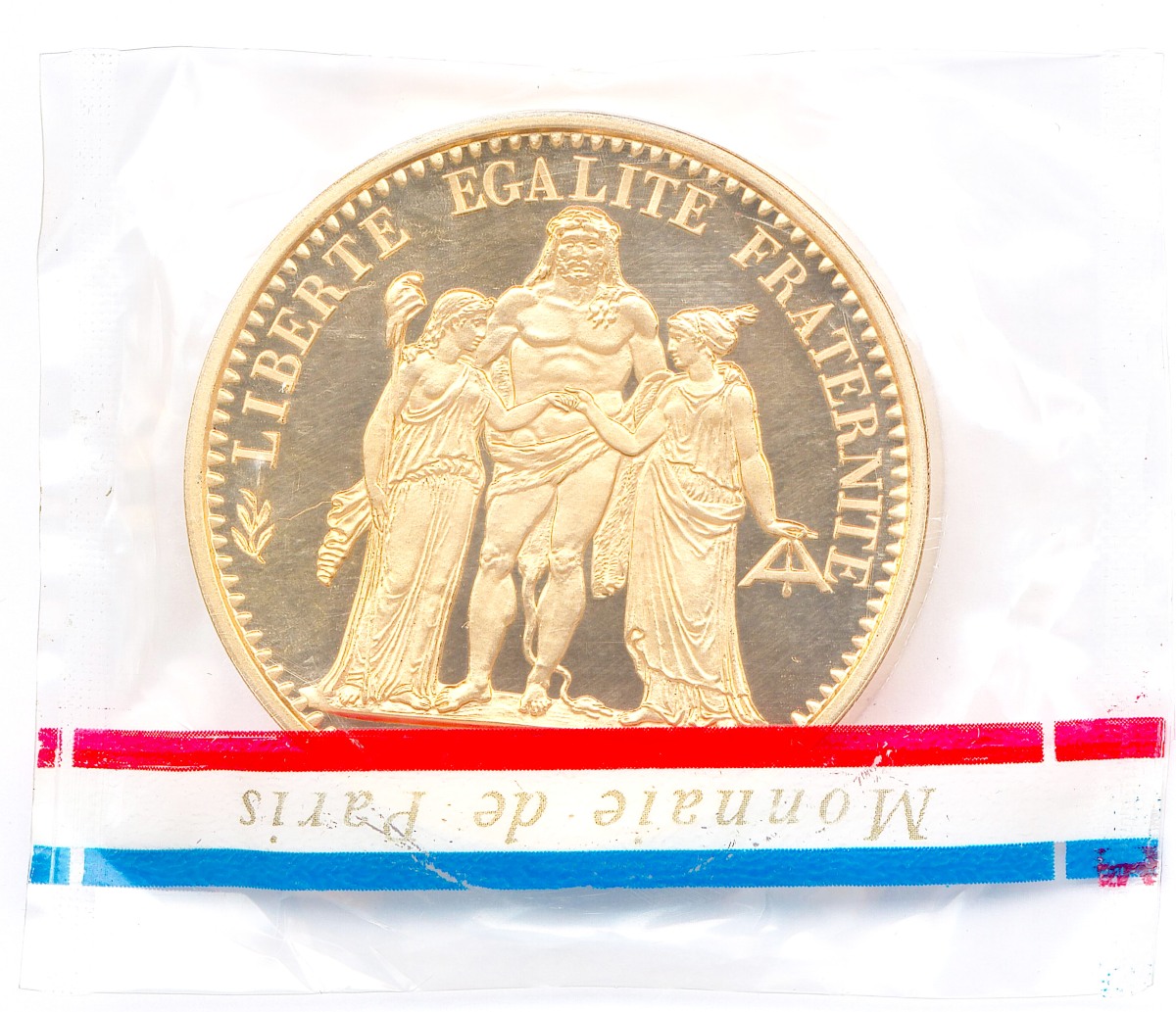 Piéfort en or 10 Francs Hercule 1971 (84,15g) sous sachet scellé de la Monnaie de Paris.