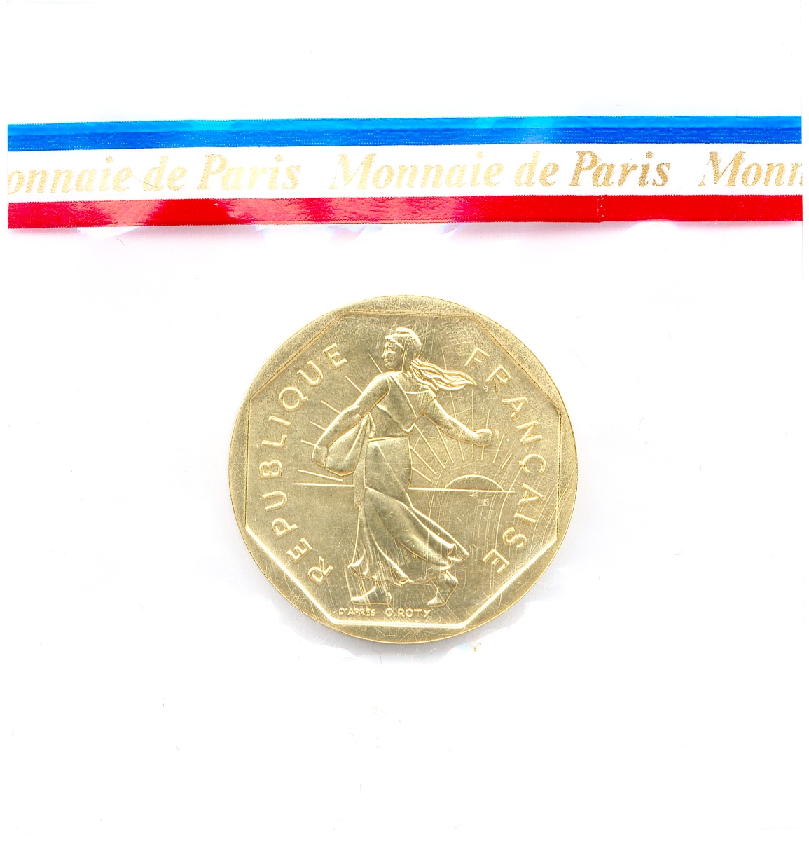 Piéfort en or 2 Francs Semeuse 1979 (30,90g) sous sachet scellé de la Monnaie de Paris (avec son certificat n° DXXVII).