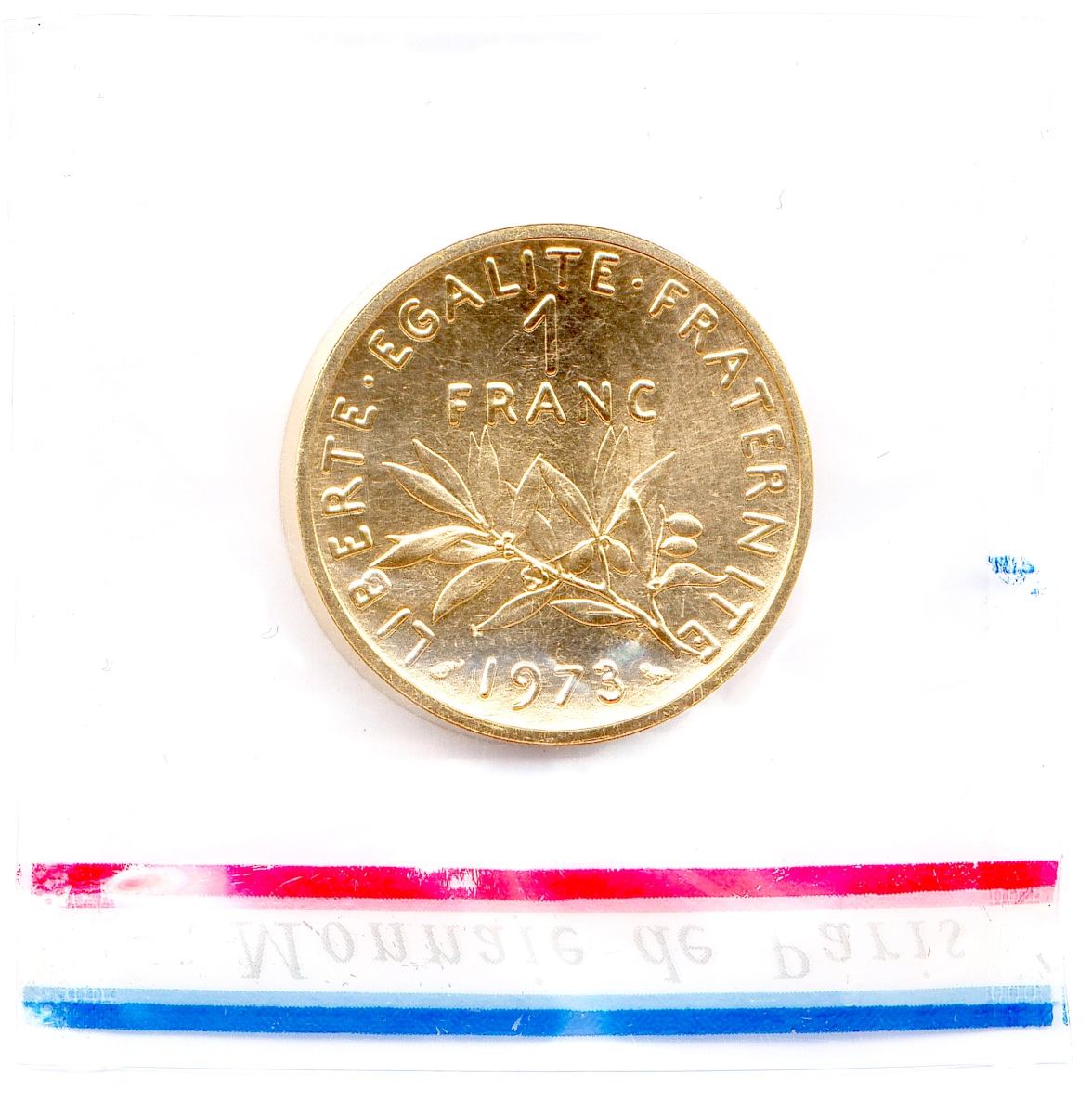 Piéfort en or 1 Franc Semeuse 1973 (24,33g) sous sachet scellé de la Monnaie de Paris.