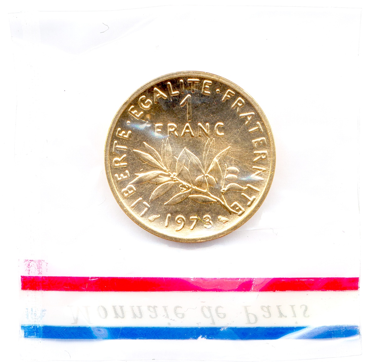 Piéfort en or 1 Franc Semeuse 1973 (24,33g) sous sachet de la Monnaie de Paris.