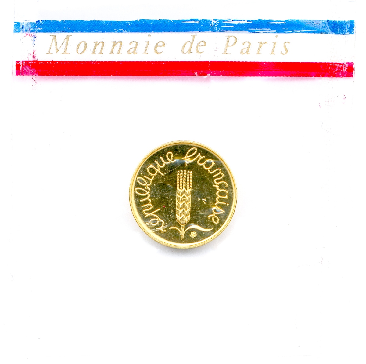 Piéfort en or 1 centime à l'épi 1974 (7,35g) sous sachet scellé de la Monnaie de Paris (avec son certificat n°L).