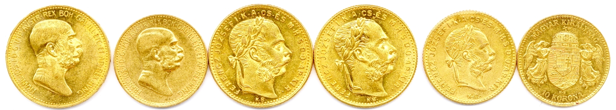 20 corona 1908, 10 corona 1909, 20 Fr-8Frt 1883, 20 FR-8Frt et 10 Fr-4Frt 1889, 10 korona 1910.