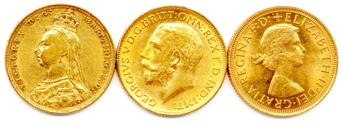 Lot de trois souverains en or :