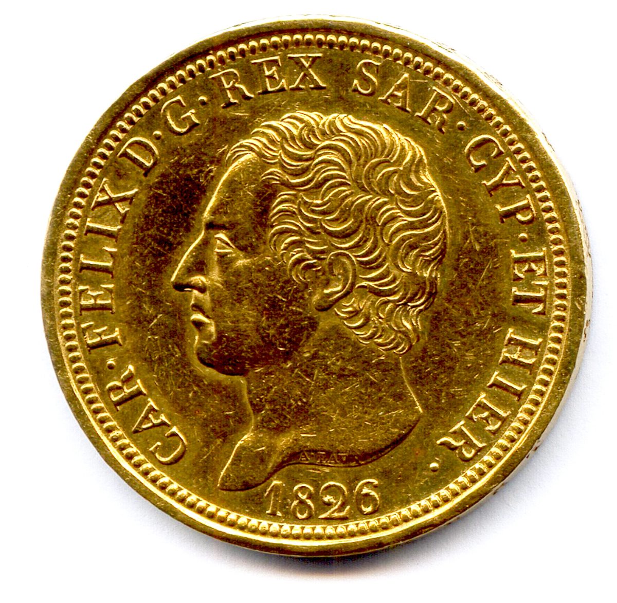 Italie Charles Félix 80 Lire 1826 Turin.	Traces de polissage. T.B.