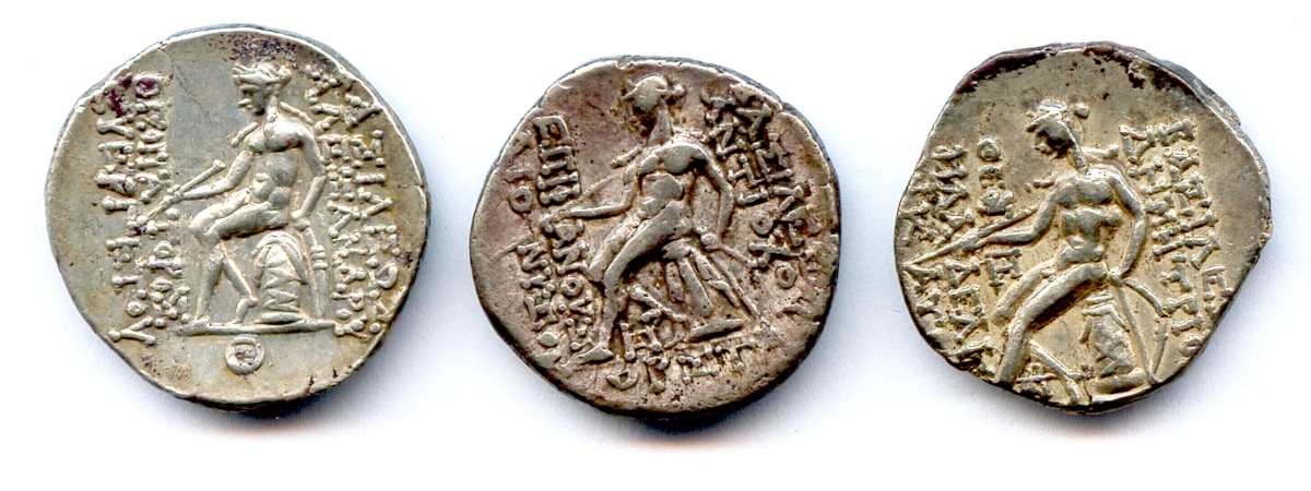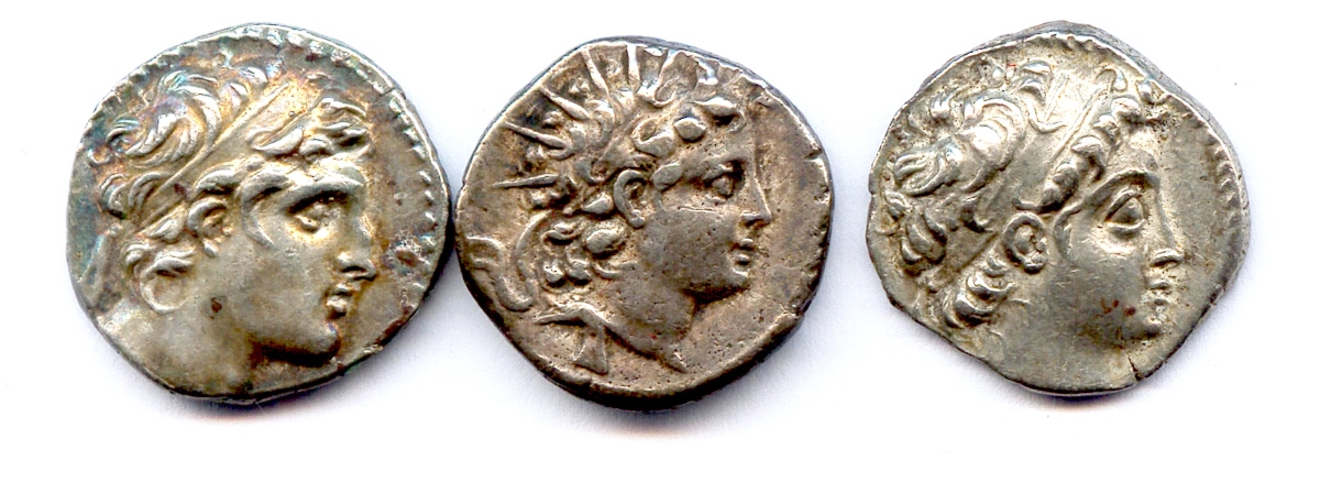 Lot de trois drachmes d'argent du Royaume de Syrie aux noms de :