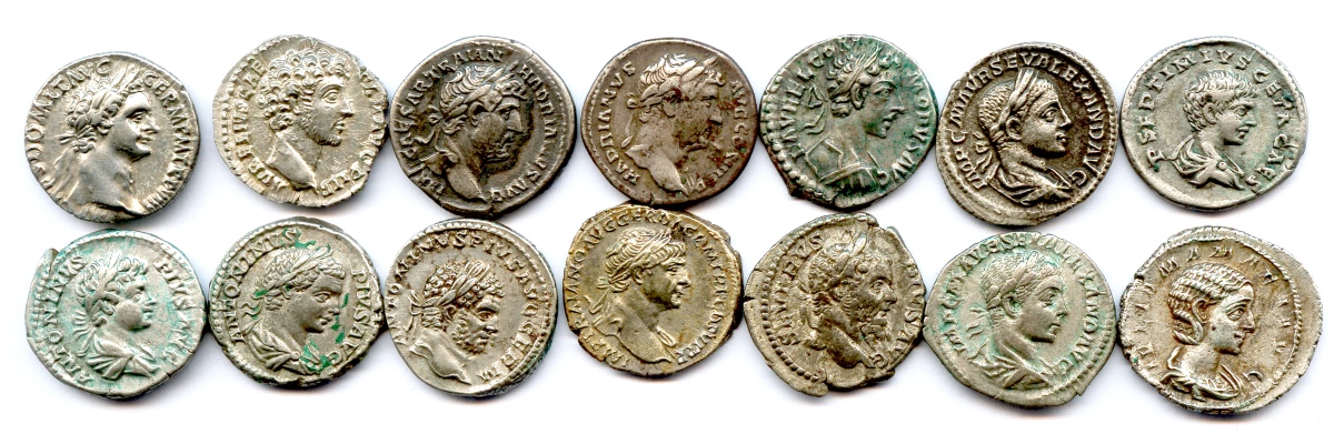 Domitien, Trajan, Hadrien, Marc Aurèle, Commode, Septime Sévère, Caracalla, Géta, Alexandre Sévère, Julia Mamée.