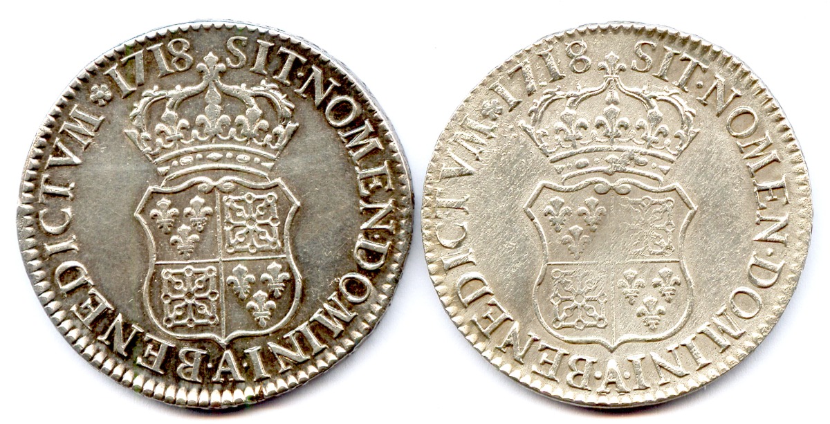 Lot de deux écus d'argent de Navarre de Louis XV 1718 Paris.