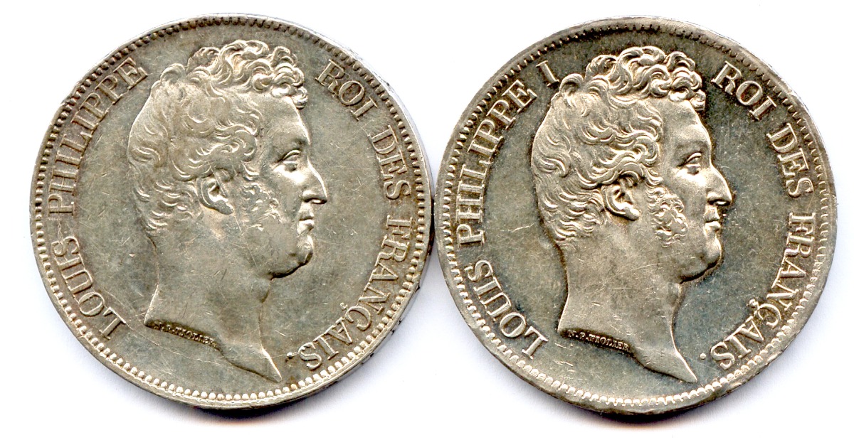 5 Francs (sans I, tr.creux) 1830 Paris et 5 Francs (avec I) 1831 Paris.