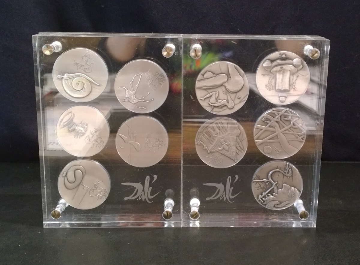 Les Dix Commandements (sataniques à motifs érotiques) créées par Salvador Dali (1904-1989) inserrées entre deux plaques d'altuglass. (Ø 50mm) (999,9°/°°)