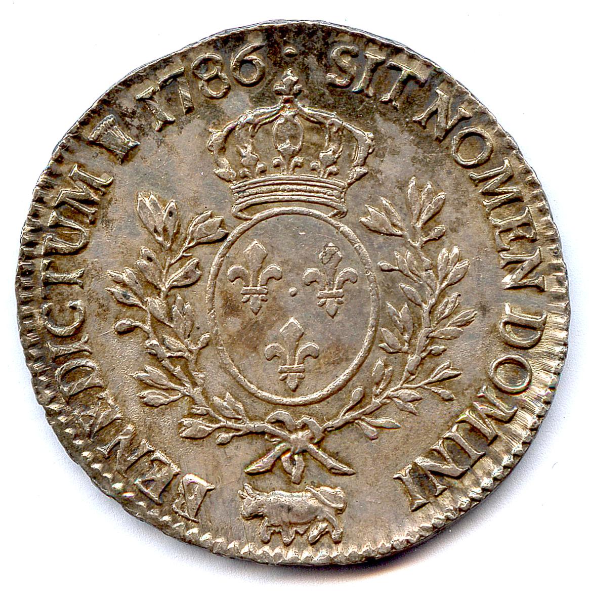 Louis XVI (1774-1793)Ecu d’argent aux lauriers 1786 Pau.Superbe.
