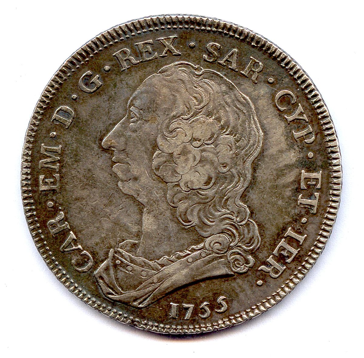 Italie Charles Emmanuel de Savoie (1730-1773) Scudo dargent 1755 Turin.