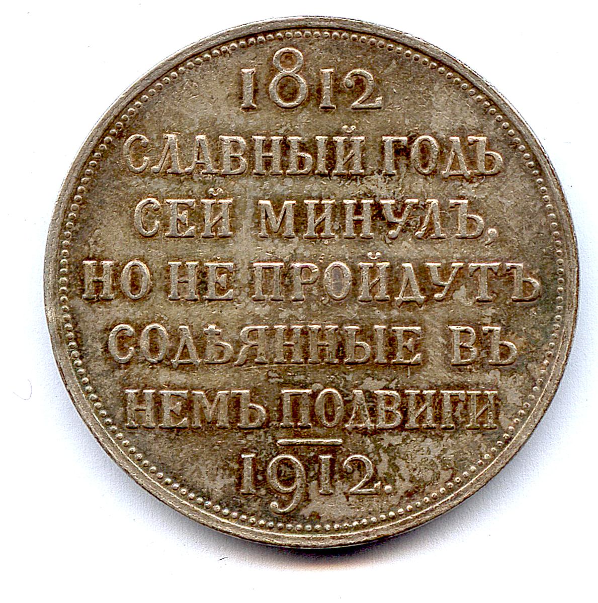 Rouble dargent 1912 (Centenaire de la Victoire sur Napoléon 1812).