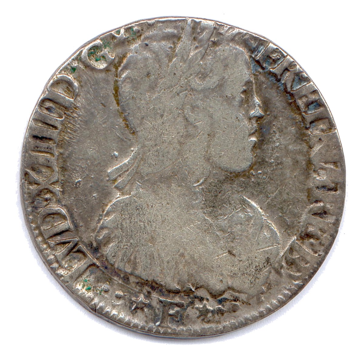 Demi-écu dargent à la mèche longue de France Navarre Béarn 1655 (deux points)*F*(deux points) = Pau . Beau.