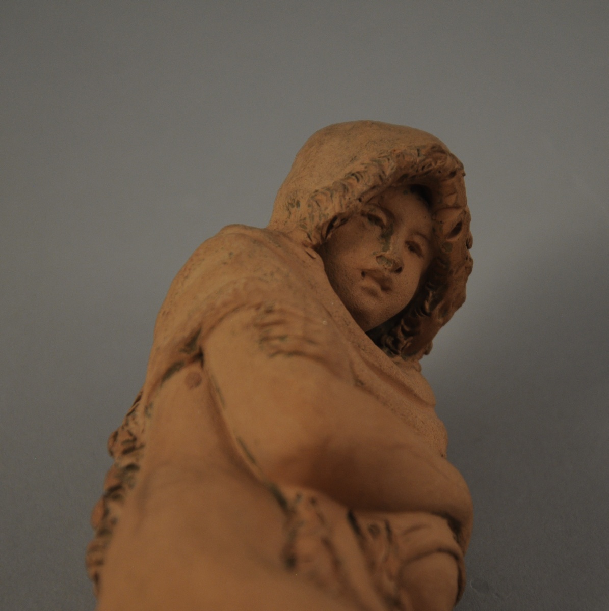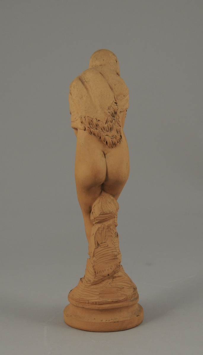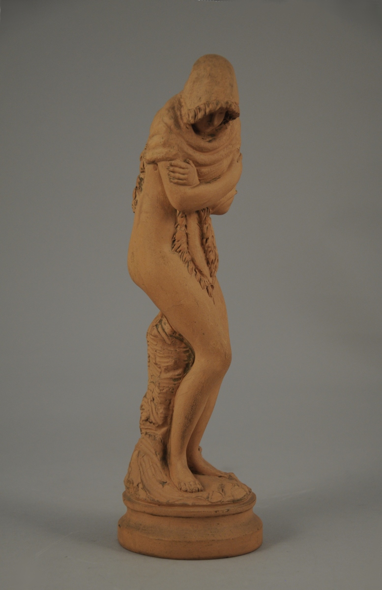 Célèbre sculpture en marbre réalisée en 1783 par Jean Antoine Houdon (1741-1828) baptisée aussi l'Hiver, et refusée au Salon de 1783 pour obscénité. Conservée au Musée de Montpellier, le Metropolitan Museum de New York en conserve un exemplaire en bronze sans la cruche cassée, dont s'inspire notre terre cuite.