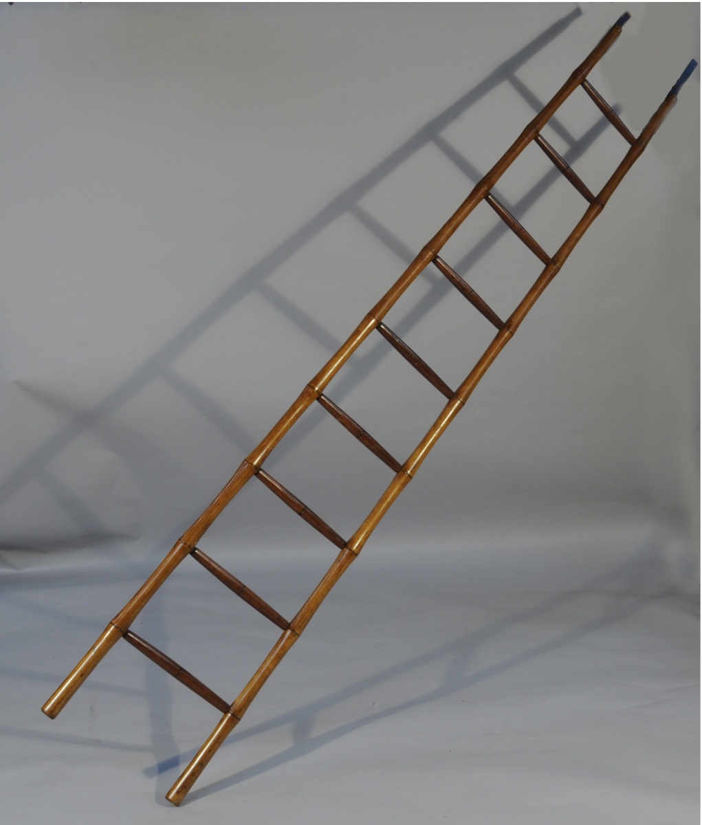 ÉCHELLE DE BIBLIOTHÈQUE en bois sculpté à l'imitation bambou.