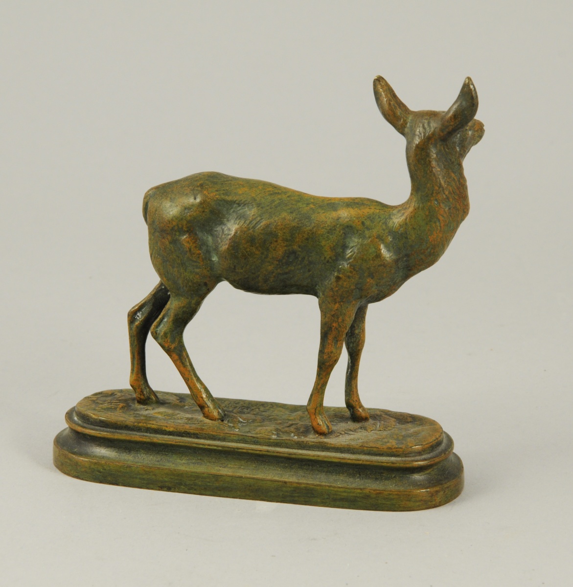 Louis VIDAL (1831-1892), d'après. Biche.Bronze signéHaut. 12,5, Larg. 12, Prof....