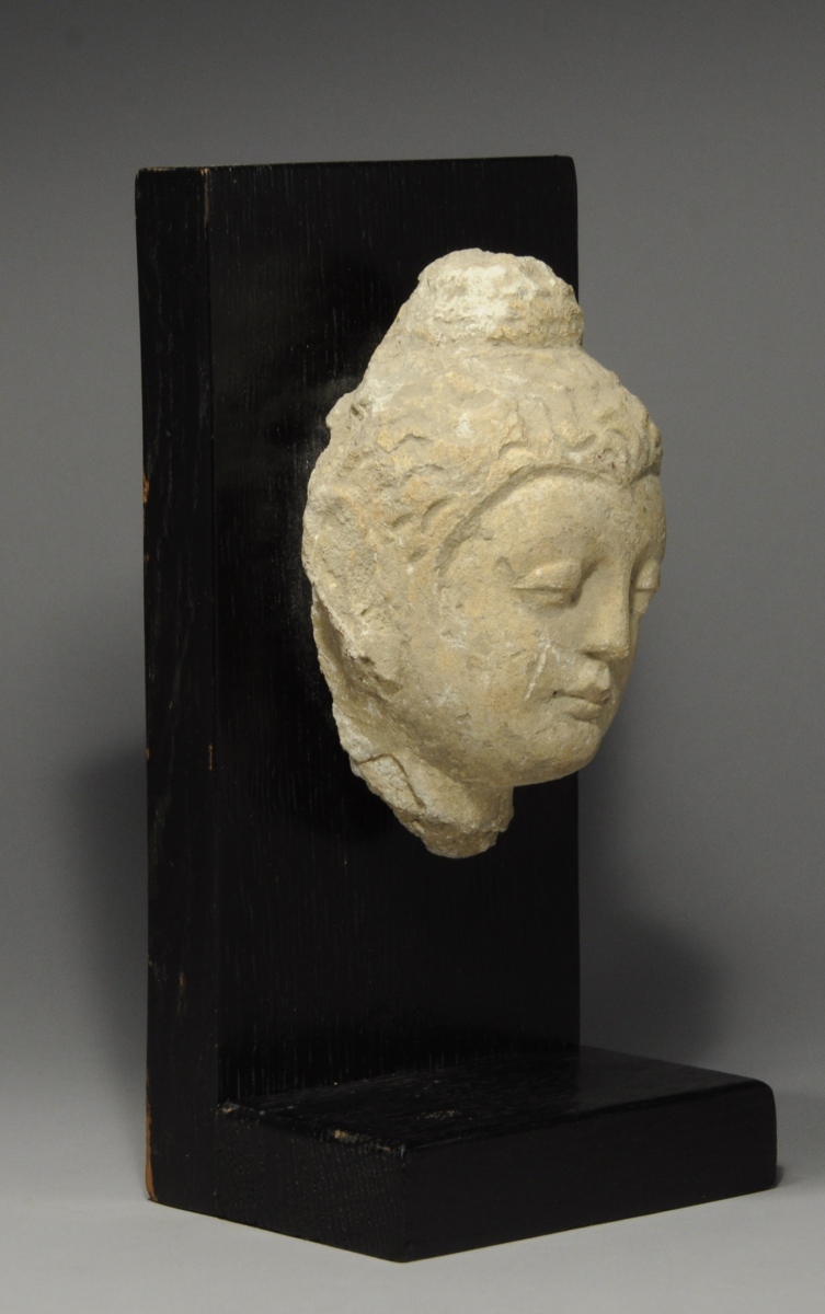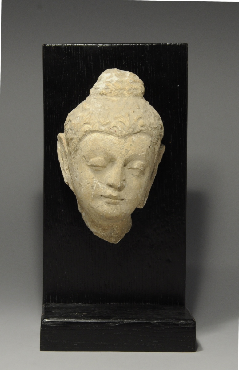 GANDHARA. TÊTE DE BOUDDHA en stuc sculpté.
