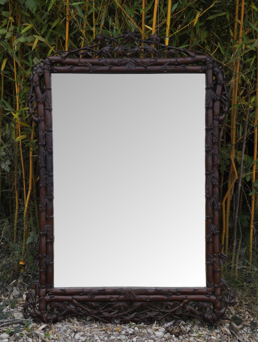 - MIROIR de forme rectangulaire en teck sculpté et ajouré de feuillages et tiges de bambou.
