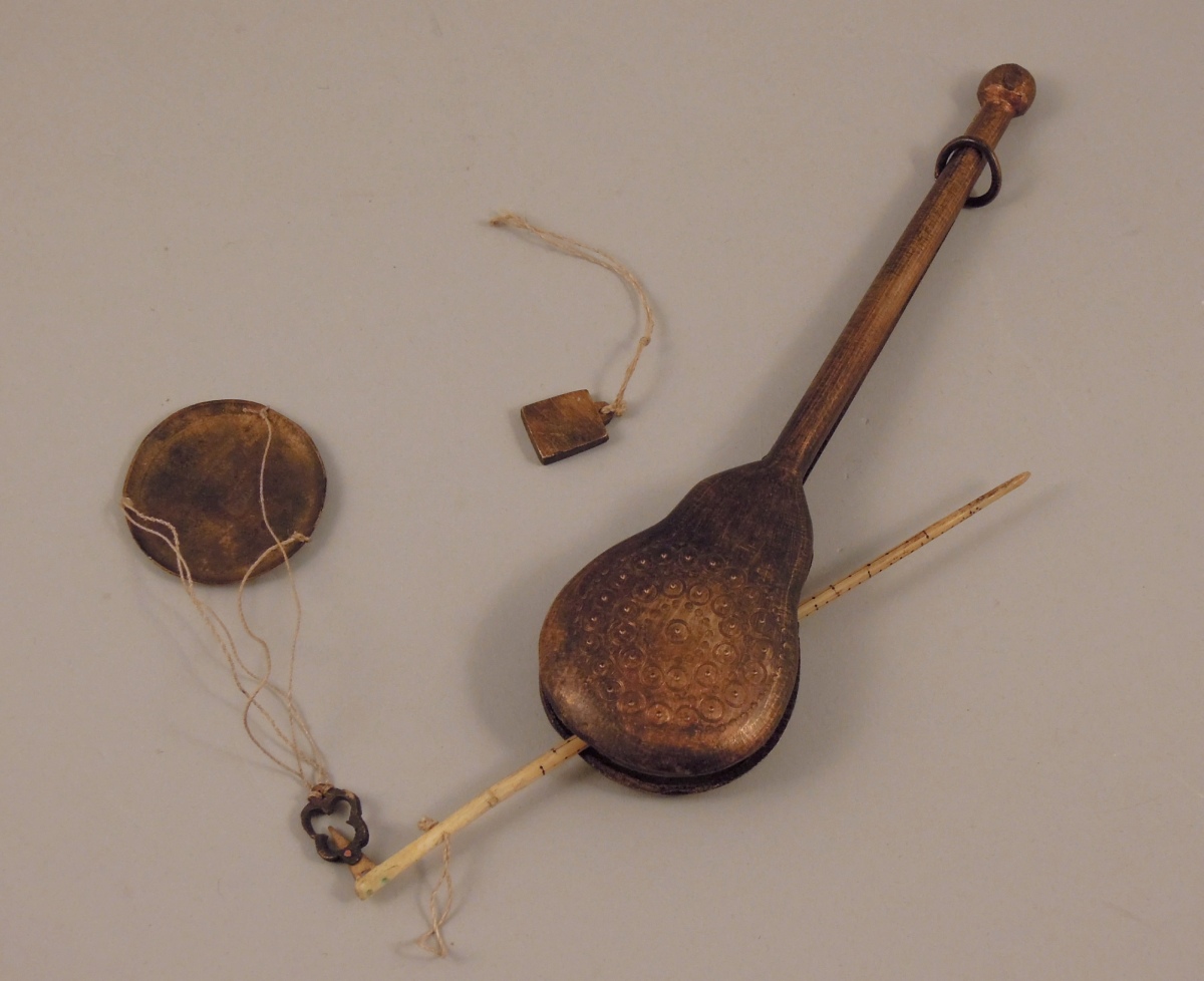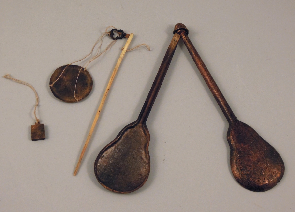 CHINE ? BALANCE à OPIUM en bronze, fléau en os. Etui en bronze patiné ornementé.