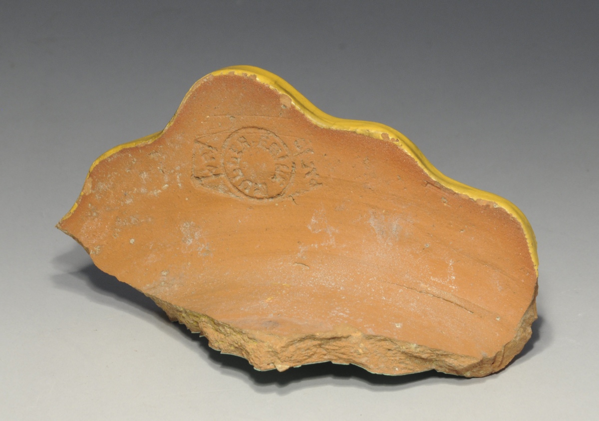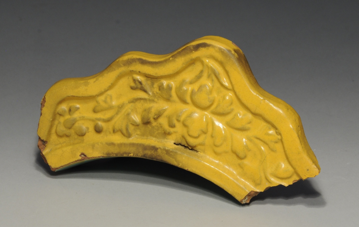 CHINE. FRAGMENT de TUILE FAITIÈRE en terre cuite émaillée jaune.