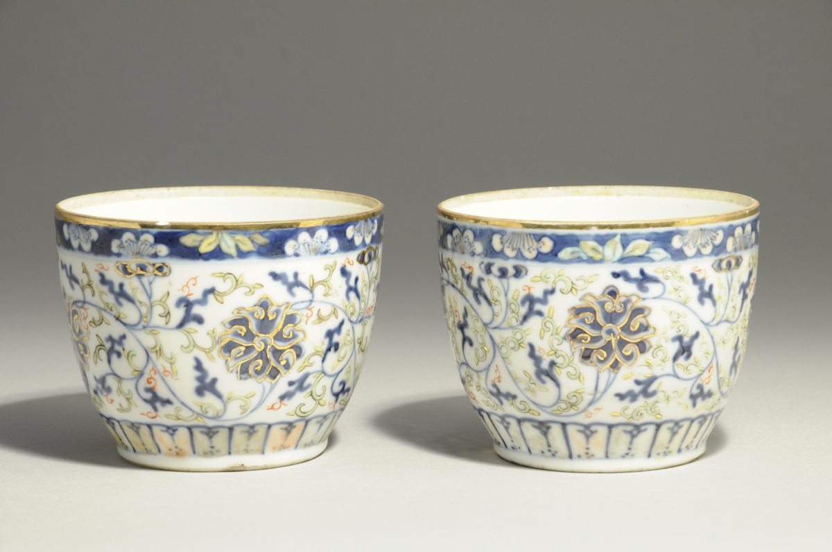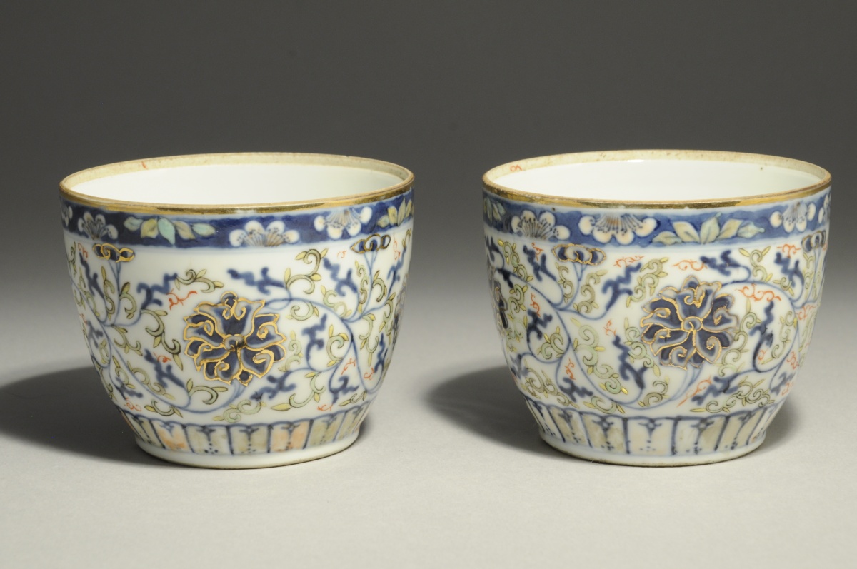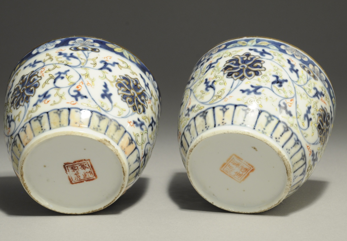 CHINE. Paire de POTS en porcelaine à décor polychrome et or de fleurs et rinceaux.