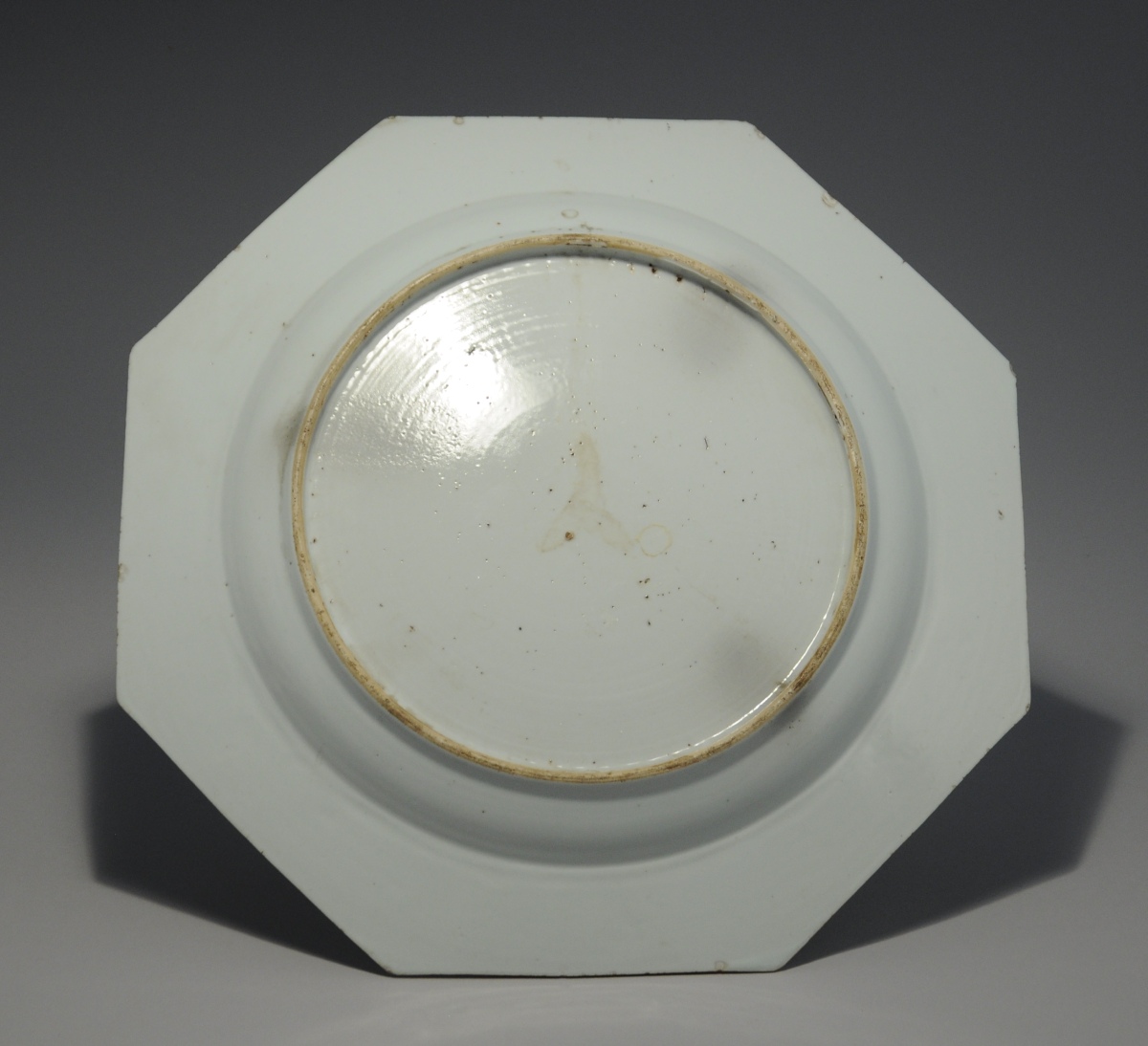 CHINE. PLAT de forme hexagonale en porcelaine à décor en camaïeu bleu de fleurs et d'un cerf dans un paysage.